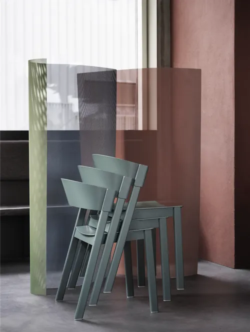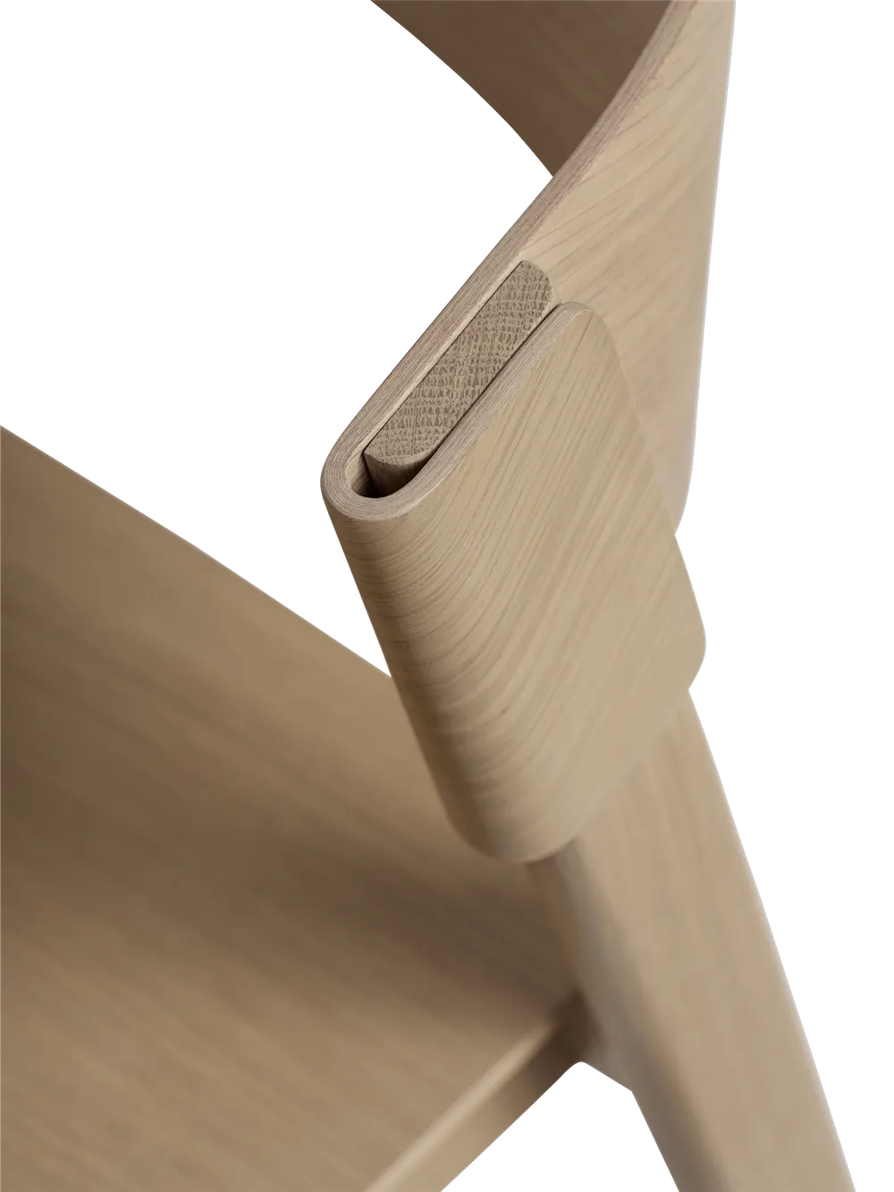 Referencing the values of forward-thinking craftsmanship and Scandinavian materiality, the Cover Side Chair is an elegant perspective on the timeless wooden chair. With its curved backrest that folds elegantly around its back legs and ties the design together, the Cover Side Chair explores the possibilities of veneer, paired with a deep comfort, modern expression and sturdy base in solid wood. The design is stackable and features a water-based lacquer.