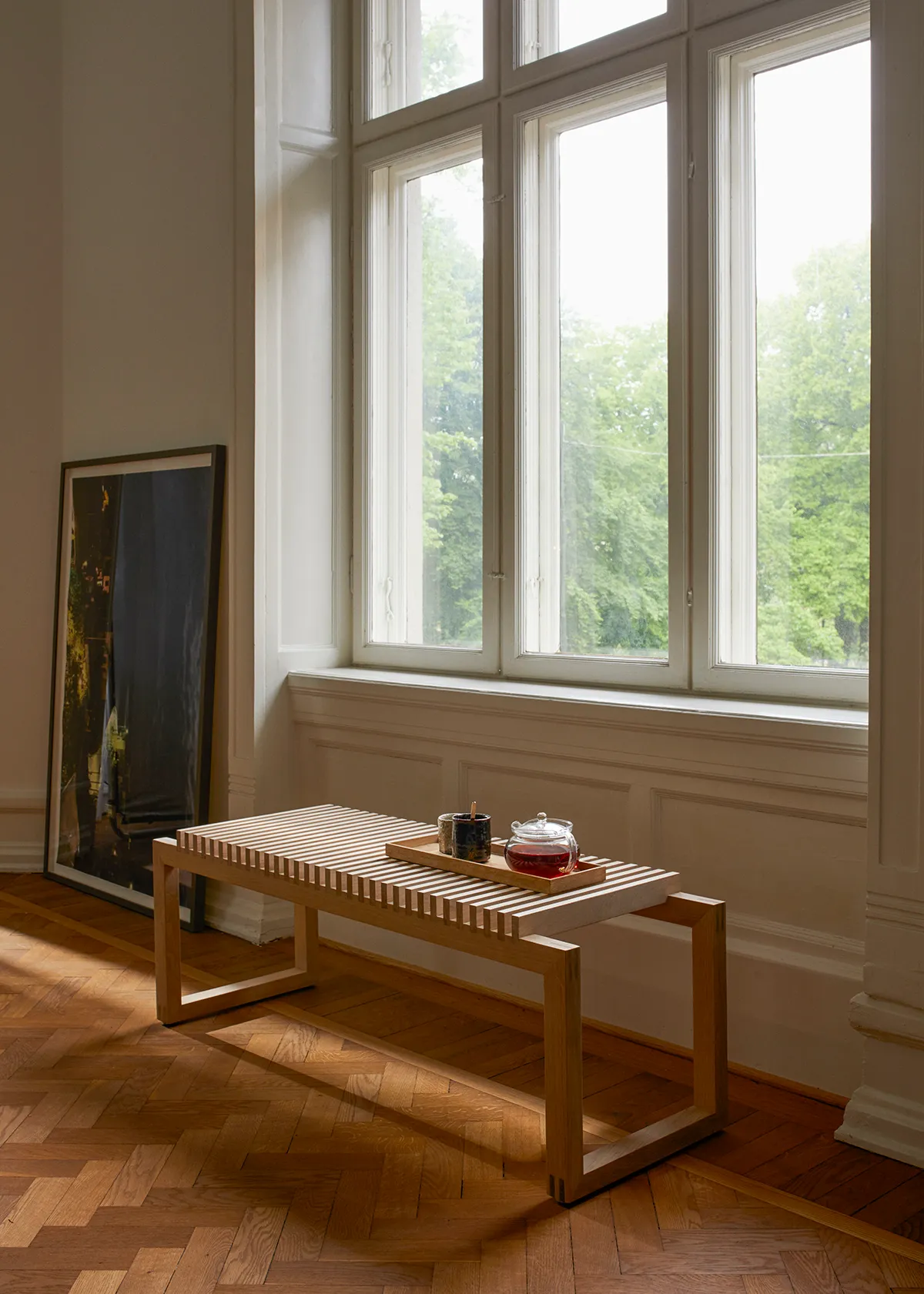 The bench was the first piece in the collection that today consists of 10 functional designs that you can mix in various constellations, available in oak, teak and black painted oak. The collection owes its success to its ability to fulfil its functional purpose while blending into most settings without compromising its signature expression.