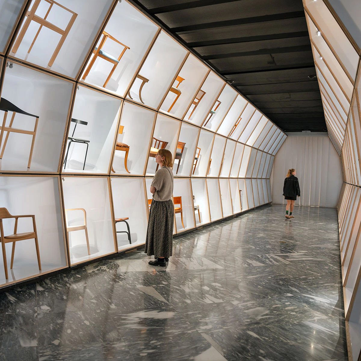 Danish Modern also brings back the popular ‘chair tunnel’ in a new larger version with 125 chairs, both highlights and unknown chairs, from floor to ceiling, telling the story of how Danish furniture is based on historical types from other countries. The chair tunnel is like a family tree of chairs’ relationships and includes chairs by both Danish and international designers – Hans J. Wegner, Arne Jacobsen, Nanna Ditzel, Cecilie Manz, Charles Eames, Marcel Breuer, or Jasper Morrison.