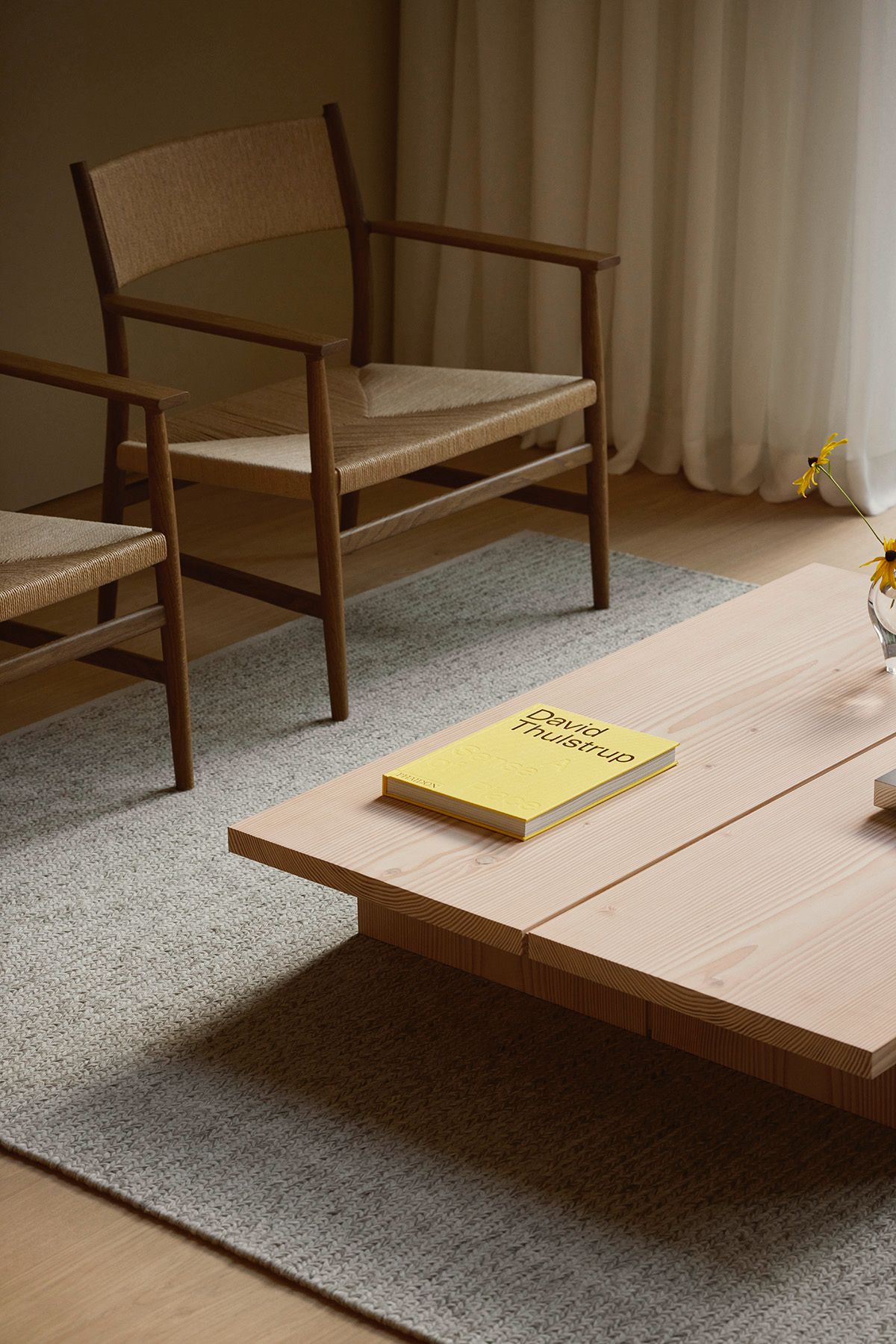 Dinesen Apartment by David Thulstrup moves beyond traditional showroom displays, instead presenting Danish design within a carefully curated living space that captures the poetic essence of Dinesen wood.