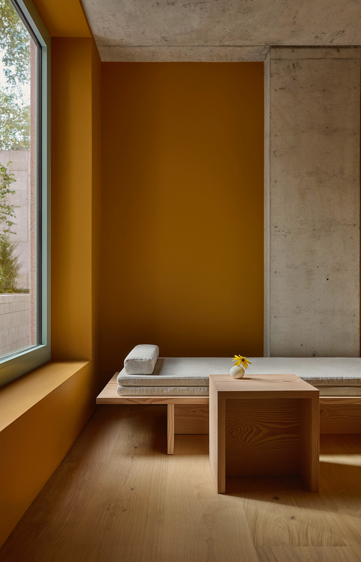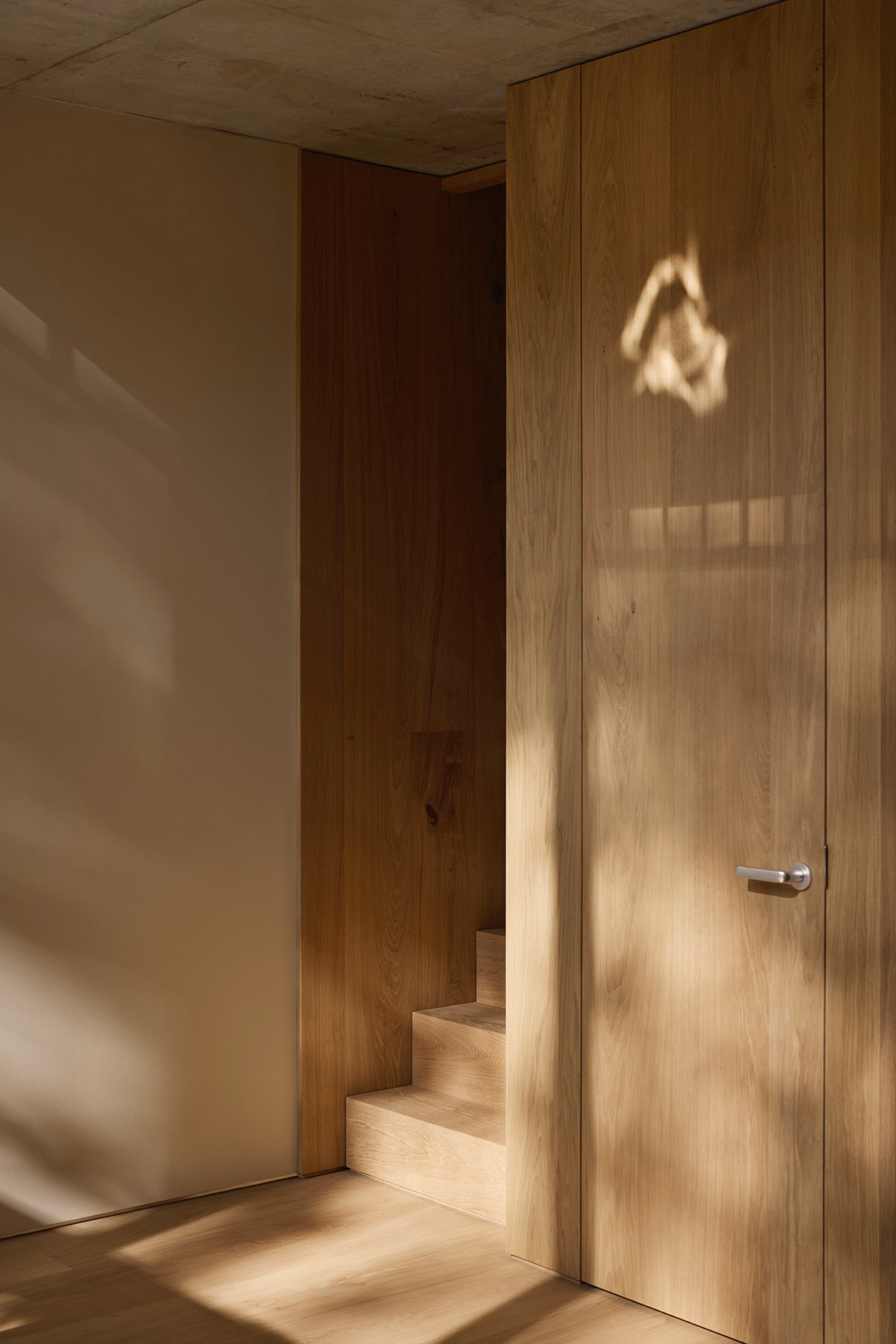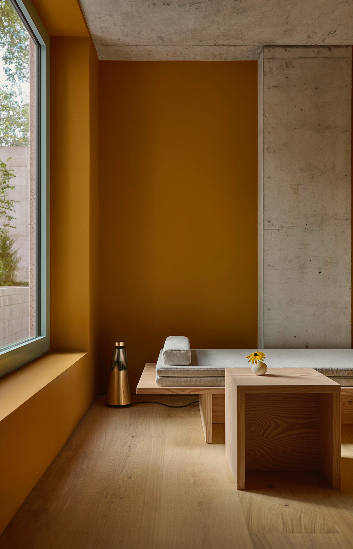 The interiors are furnished with a curated mix of David Thulstrup’s designs, including the Arv Collection for Brdr. Kruger and pieces by John Pawson for Dinesen. Thulstrup chose the upholstery made of Levino fabric by Sahco.