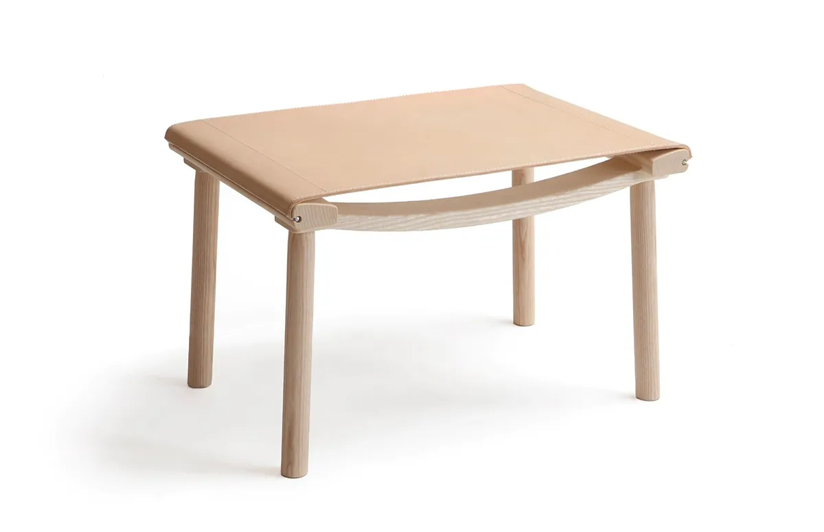 The December ottoman is composed of a carefully balanced solid wood frame and an upholstery in strong, natural materials. The frame is available in oiled ash and oak – also available: oak with smoked oak stain – and the upholstery options include traditional linen canvas and natural-tanned leather in black, nude or cognac.