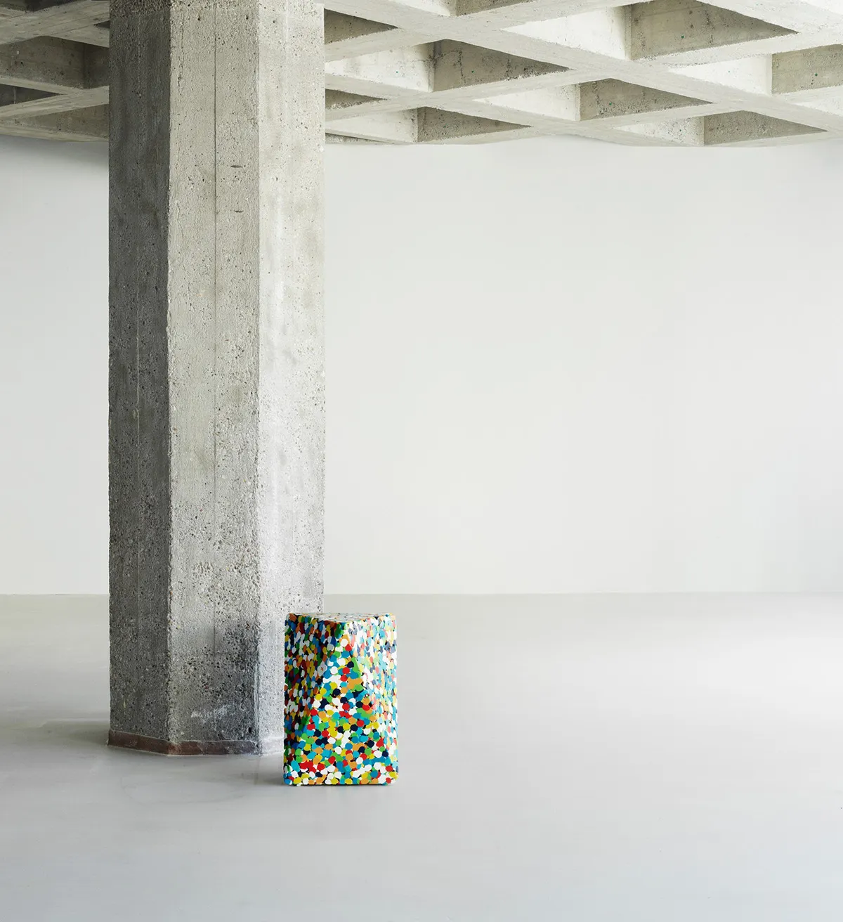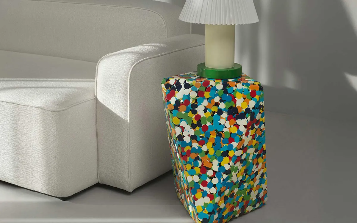 Beyond its visual impact, Delta Proust Side Table exemplifies the beauty of repurposed materials. Crafted from 100% recycled pigmented polyethylene (PELD) sourced from industrial packaging waste, it transforms post-industrial waste material into a design statement with a bold presence.