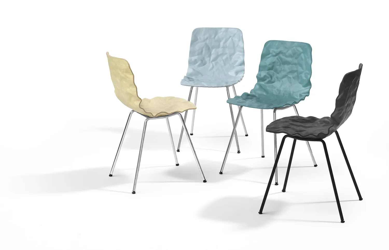 The dented surface provides a 3D experience but are implemented in regular veneers, which can seem impossible. An innovation that will lead to new opportunities and challenges to develop molding regular veneer. DENT is comfortable, expressive and useful, and has three different bases in tubular steel of which one is stackable and one is a swivel-base. The three versions allowing DENT can be placed in many different contexts. Read the full story on DENT in our little Pixi book FOCUS, or on our website. The material is layer-glued compression-molded ash veneer with frame in tubular steel.