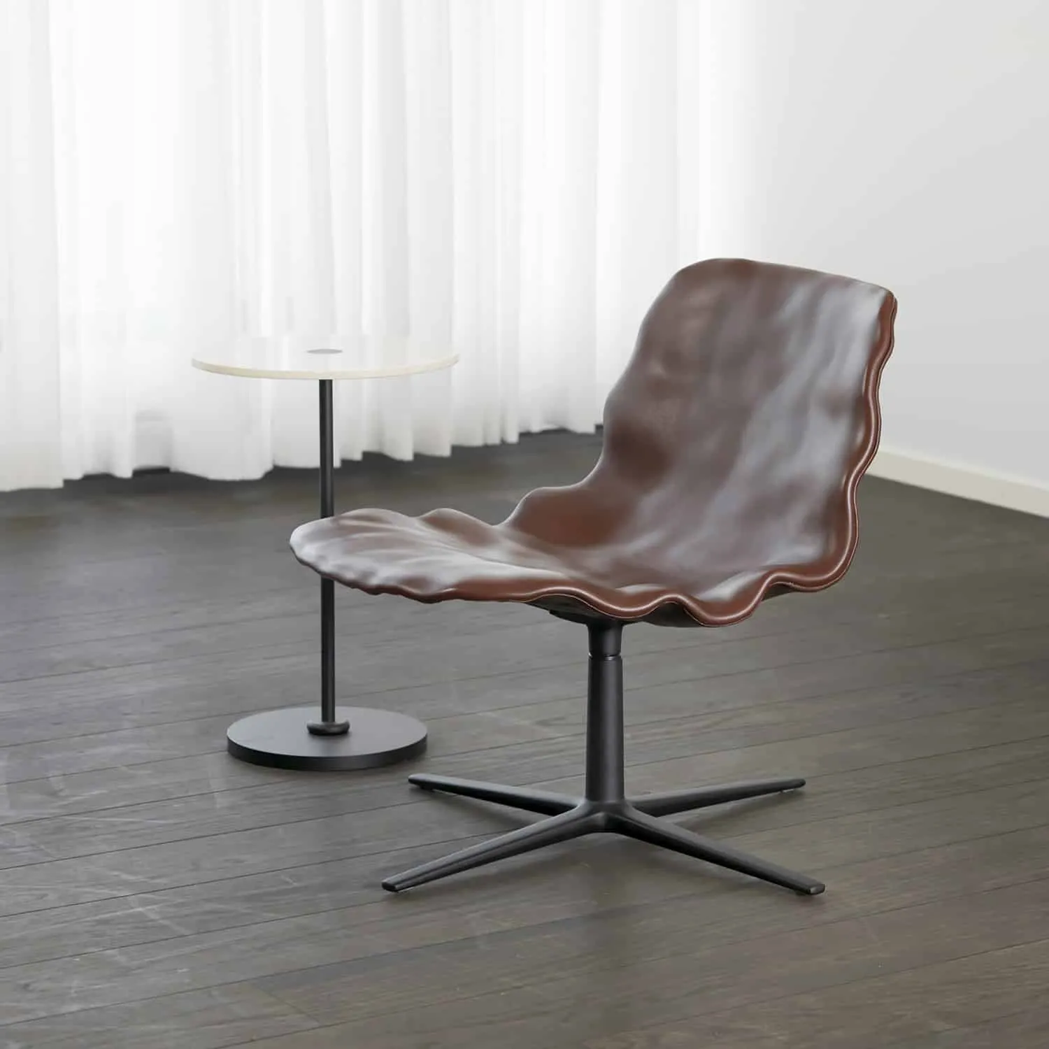 From a distance, the new Dent easy chair looks like it’s sculpted in clay. When you sit on it, it’s all soft, enveloping leather. The new addition to the Dent family by o4i (office for ideas), keeps the original three-dimensional surface in ordinary veneer, but now with a large generous ”dressed” seat shell fixed on a swivel frame. “We have stretched the curvature even more,” says Henrik Kjellberg, who together with Jon Lindström designed the original Dent chair in 2013, “and it works perfectly!”