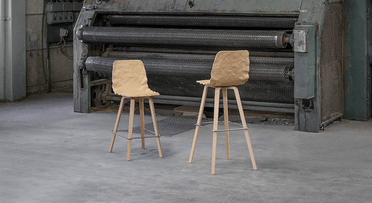 Dent adds a human touch to contemporary clean and overly strict architecture, while questioning the modernist heritage where the straight and meticulously polished are the norm. “Dent’s uncontrolled flow of shapes offers a contrast to interior spaces that are often experienced as being way too perfect. Even the architecture comes alive in the presence of Dent.” At first glance, Dent might appear uncomfortable, but the curving shape is well adapted to the human body where it really counts. This upholstered version is available in fabric or leather with a classic swivel frame base. The original Dent is also available with or without ”dressed” seat shells as chairs and bar chairs, all with a choice of frames in steel or wood.