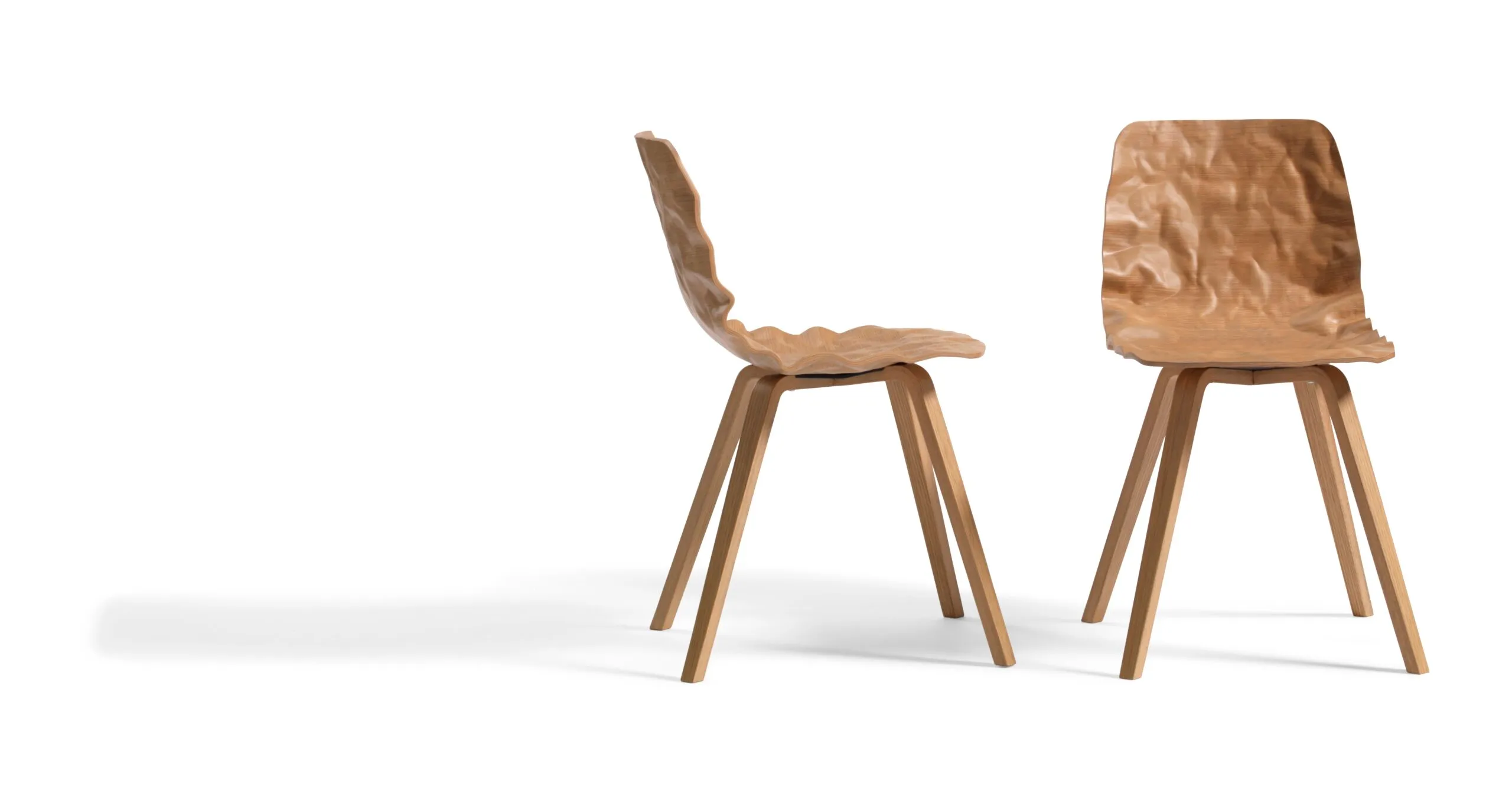 Last year came the chair Dent as an answer to the question; Is it possible to create a 3D shape using a normal veneer? With Dent chair the impossible becomes possible. Dent challenges established notions of what constitutes elegance and beauty. The inspiration for DENT doesn’t come from a crumpled piece of paper, but it’s the easiest way of explaining the theory in practical terms. In exactly the same way that you can shape a crumpled and then smoothed-out piece of paper into a bowl, for example, the designers O4i have cracked the code for how you “trick” traditional veneer into bending itself in different directions without breaking and folding.