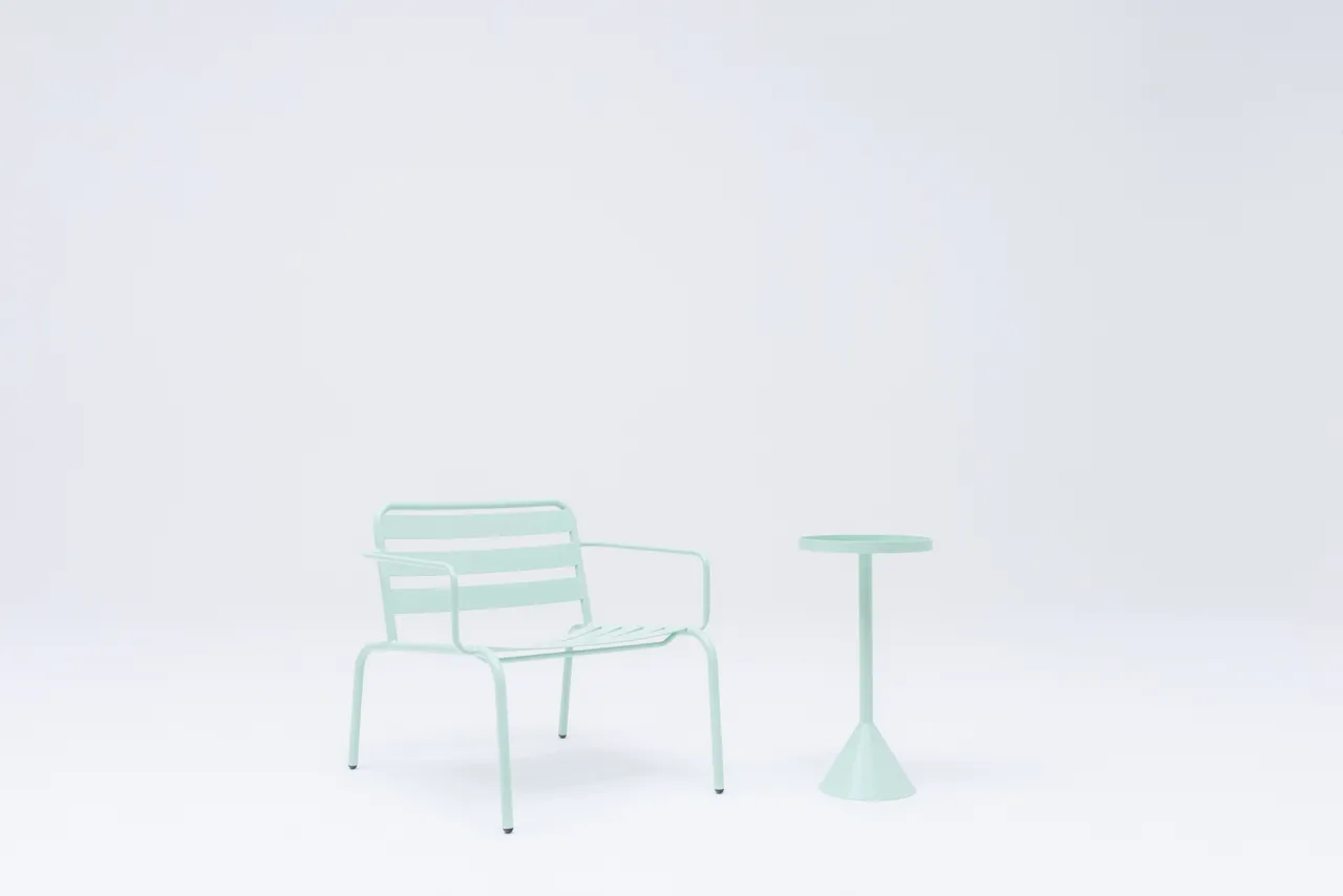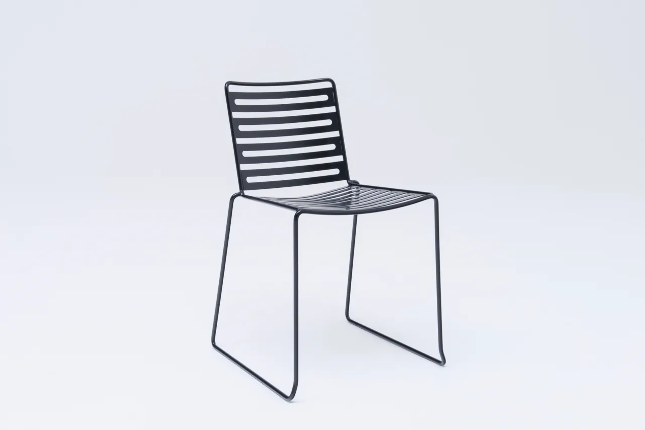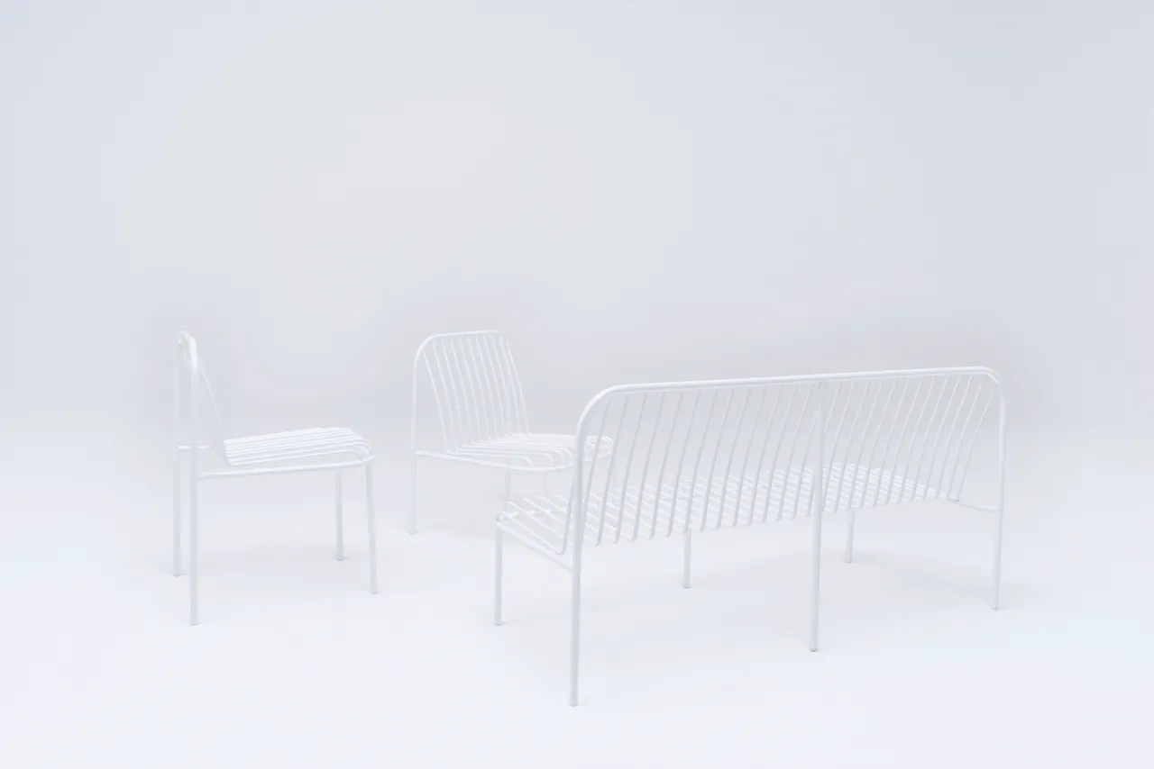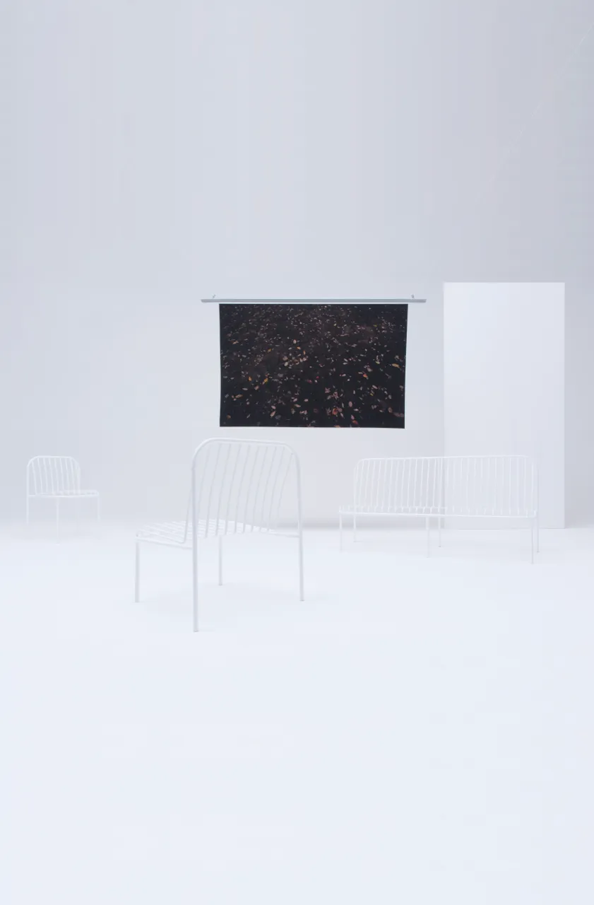 A series of stackable furniture consisting of a chair, a lounge chair and a sofa, in powder coated steel, in white, black, green, pastel green or orange. The chair softly bends one part of a set of evenly-spaced steel pipes to create the curve of the seat. The curve was carefully designed to visually soften the hard and cold look of metal furniture. Designer Nendo is Guest of Honour at Stockholm Furniture Fair 2013.