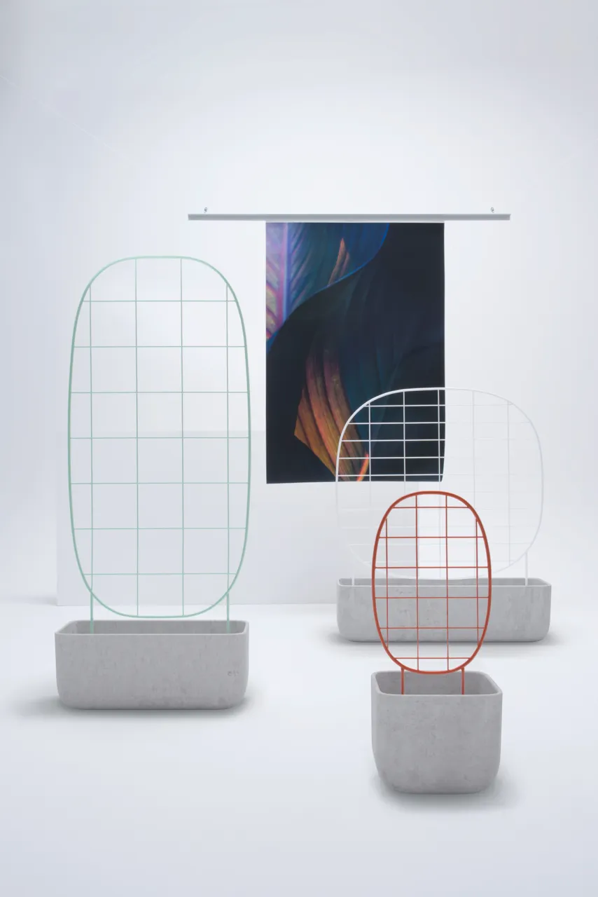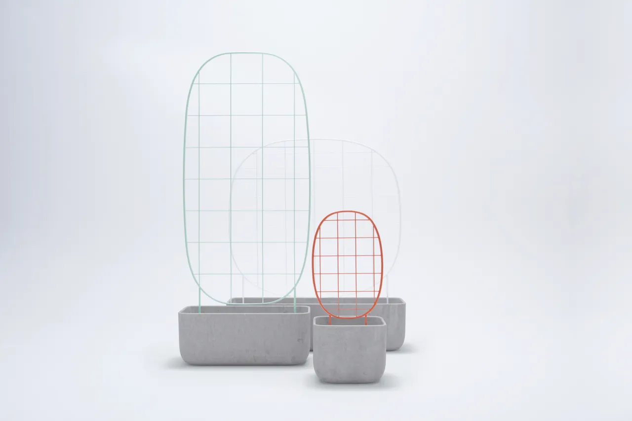 Plantrellis is a collection of outdoor furnishings consisting of three concrete planters and three metal trellises, which serve as a support for climbing plants. Plants enrich our environment – they give off oxygen and colour and create an aesthetically pleasing