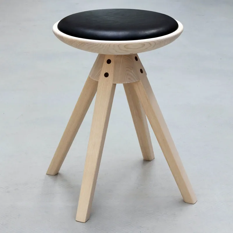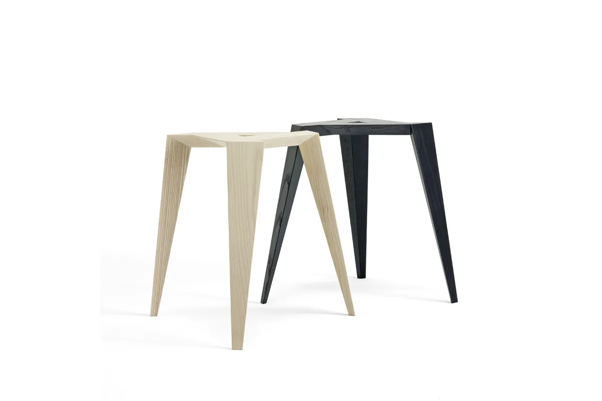 The construction in solid ash wood is intelligent and complicated and is hidden inside the elements of the stool. But the expression seems simple and natural as if it was moulded.