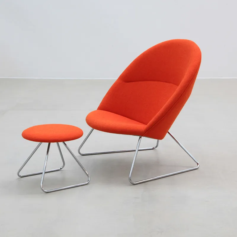 Onecollection is now re-lauching a super comfortable easy chair complemented by a foot stool and a table. The chair has been designed by Nanna and Jørgen Ditzel in 1956 for the company Fritz Hansen, but it has never before been produced in a large scale.