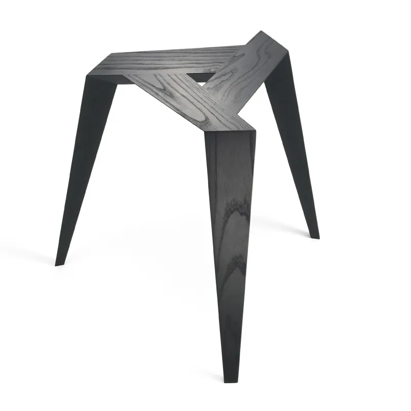 Japanese paper folding technique and an ordinary warning triangle inspired the young Norwegian designer Linn Anna Bjørk making her slight and sculptural stool.