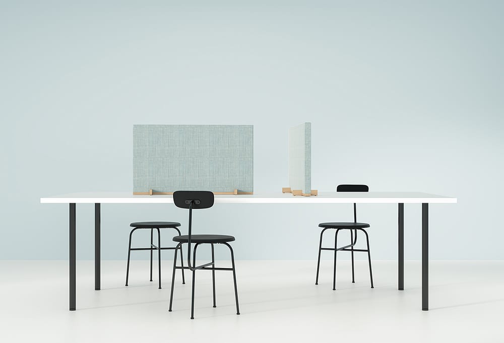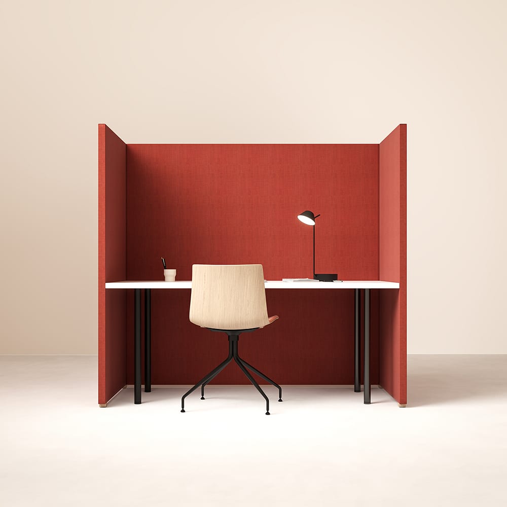 Dezibel Table has been developed to provide the best possible design with optimal dimensions for noise reduction between workplaces. The table screen provides an effective and creating working environment by lowering noise levels and improve the personal feeling. A chipboard frame with stone wool filling, covered with fabric featuring a concealed seam on the inner edge.