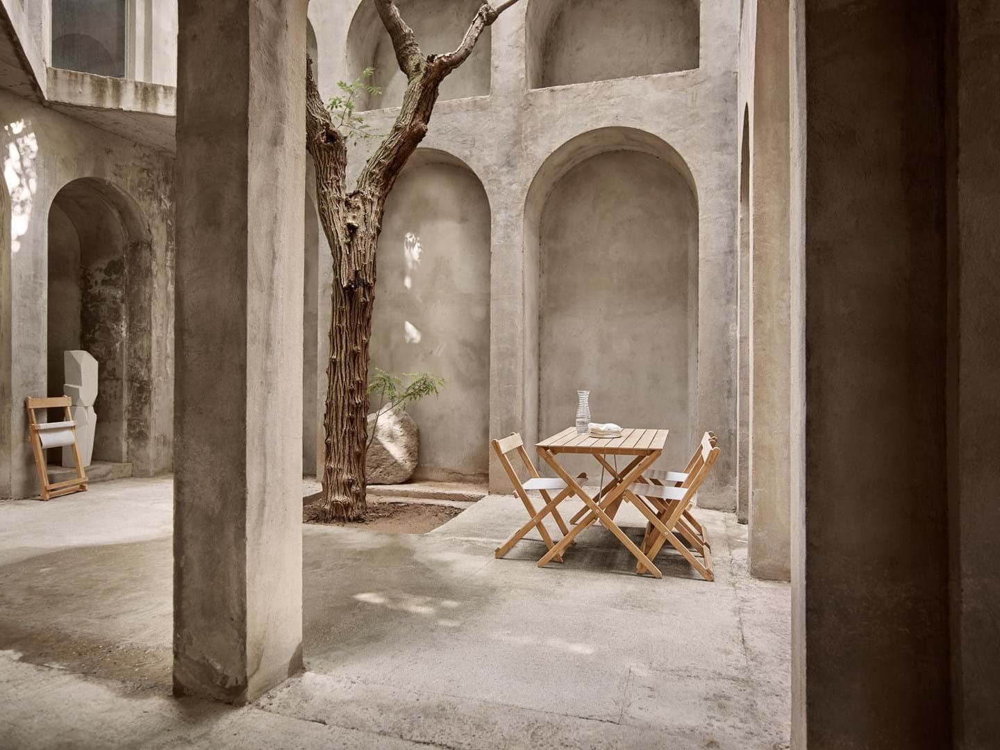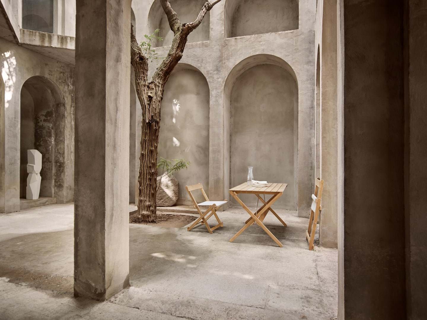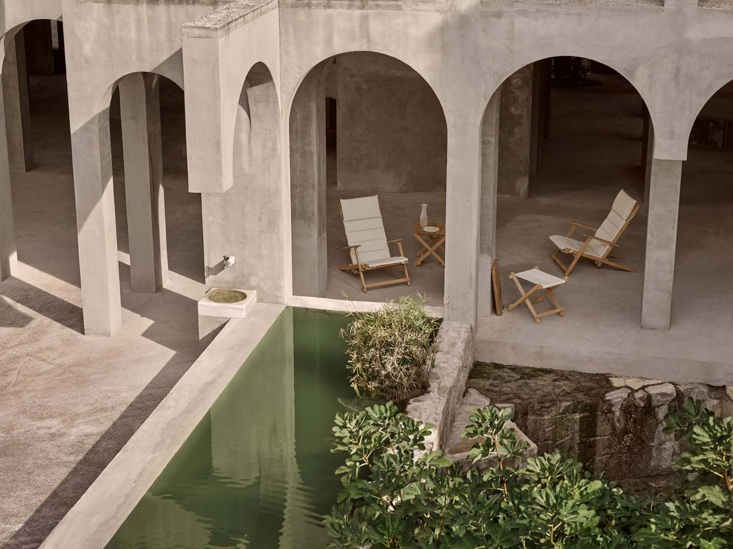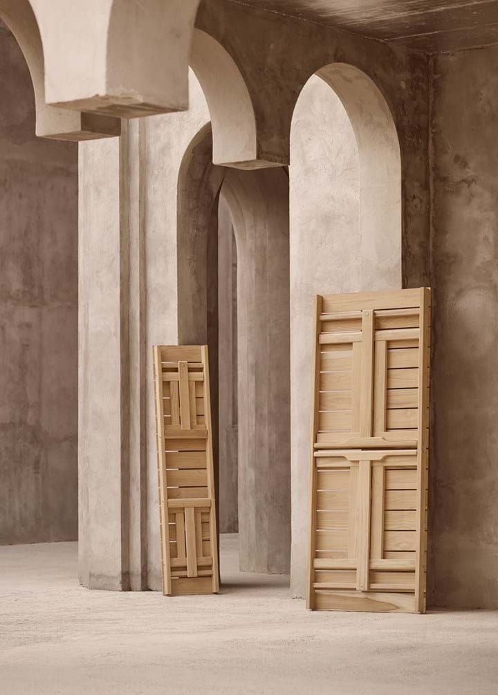 Moving the attention to detail reserved for indoor furniture outside, Børge Mogensen’s Outdoor series is crafted in solid, untreated FSC™-certified teak (FSC C135991) and tactile Sunbrella fabric. The original slatted designs of the 60s and 70s include foldable chairs, benches and a table first conceived for Mogensen’s private balcony.