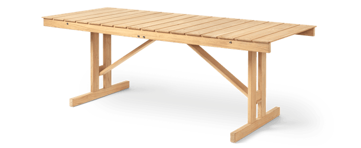 Referencing the simplicity of Shaker furniture, with clean lines and functional details, Børge Mogensen’s foldable Outdoor Table was designed back in 1971. Rediscovered by Carl Hansen & Søn, the iconic designer’s outdoor table and bench set is reworked to modern sensibilities, yet remains true to the spirit of its original design. Set on a sturdy but elegant wooden frame, graphic slats create a durable and decorative tabletop perfect for impromptu outdoor gatherings. Crafted in untreated FSC™-certified teak, the durable design withstands wear and weather conditions to age gracefully over time, acquiring an elegant silver-grey hue. Pair with the corresponding bench to create a set that neatly stows away when not in use.