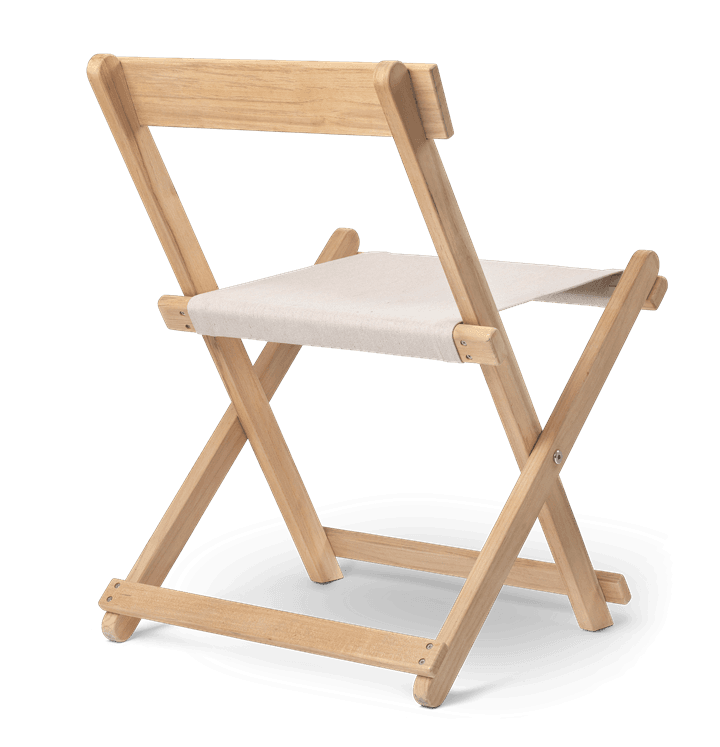 Børge Mogensen conceived the BM45701 Dining Chair in the late 1960s, as a part of his Deck Chair Series of functional outdoor furniture. The chair’s simple, slatted lines and solid teak construction provide durable functionality in a range of outdoor spaces. Fitted with a suspended seat in weather resistant Sunbrella fabric, it folds neatly away when not in use – and can be hung on the corresponding wall mount.
