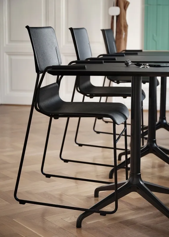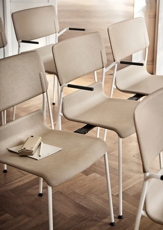 “We wanted to develop a chair that would be easy to use and comfortable to sit on – taking the opportunity to combine different materials and components based on how the chair is going to be used. With the moulded seat and back, I have been able to work with soft edges and details to design a chair with classic – yet still unique – features. It feels even better to have been able to work with a new material that has a low climate impact.”