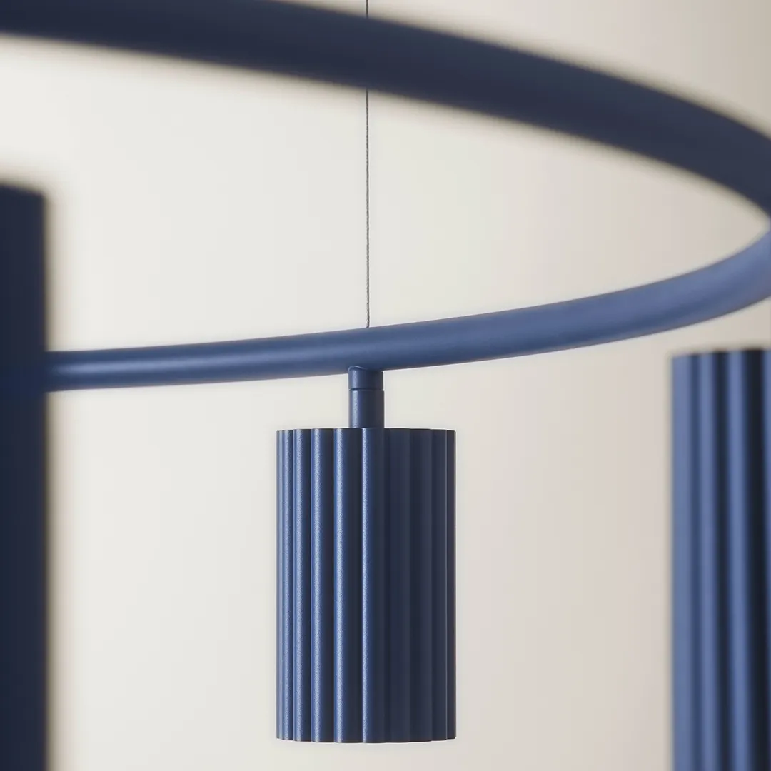Inspired by soft pleated fabrics and high-fashion textiles, the collection contrasts softness with the strength of lightweight aluminum. The smooth matte finish and refined design offer both elegance and practicality, with pendant and wall lamps providing a striking yet functional presence.