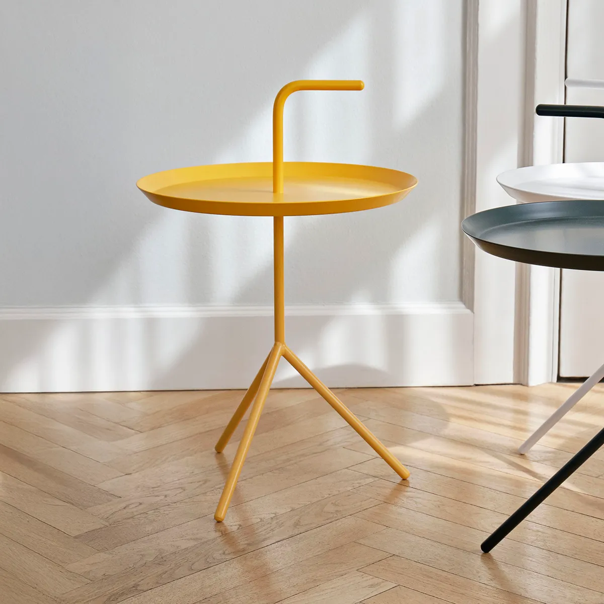Thomas Bentzen’s portable side table is aptly named ‘Don’t Leave Me’. Abbreviated to DLM, it features a convenient handle that allows the metal table to be carried from room to room. Although it has a lightweight and portable structure, the three slanted legs provide great stability. Available in two sizes, the DLM and DLM XL make functional alternatives to traditional coffee tables. Suitable for inside use in most home or office environments.