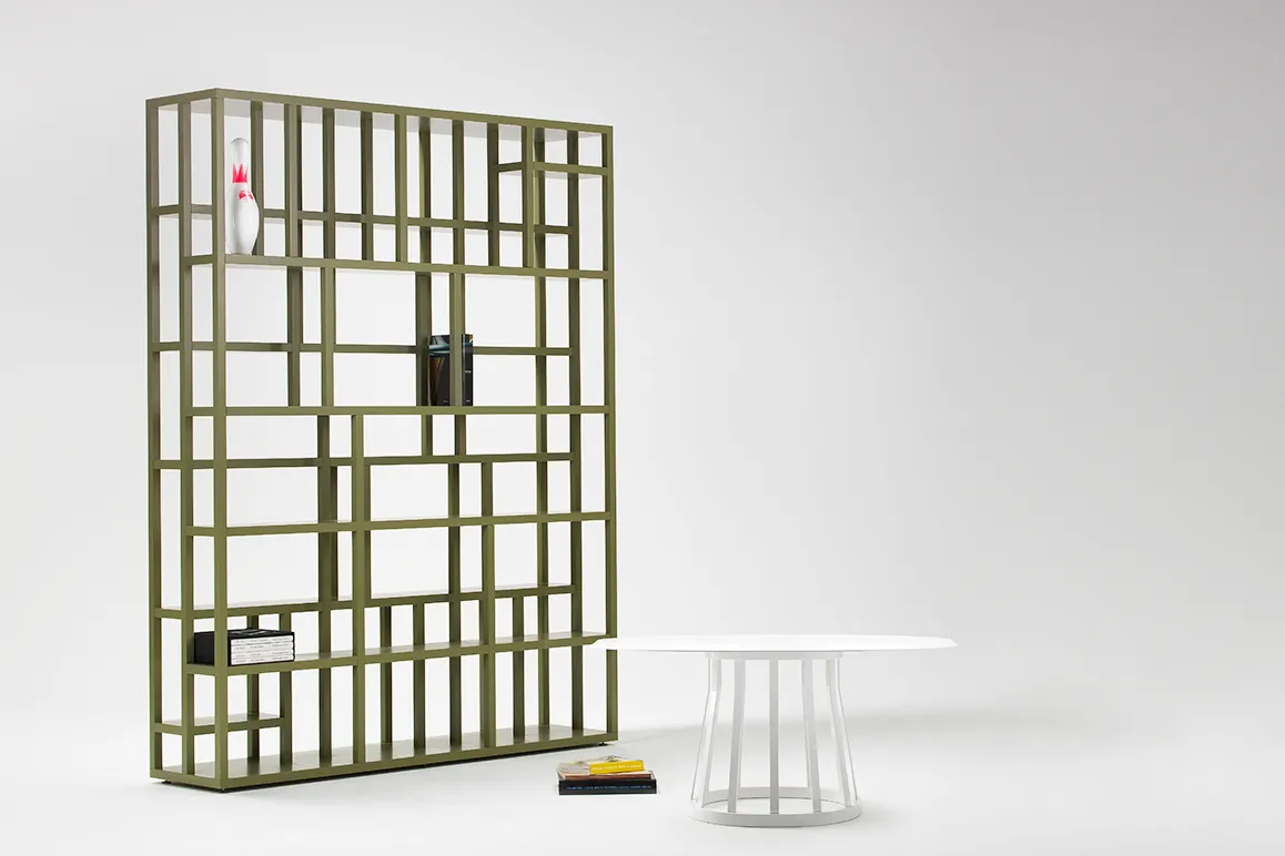 A double shelf to be used as a room divider. Firstly prototyped with French VIA in 2007 and edited by David Design in 2008.