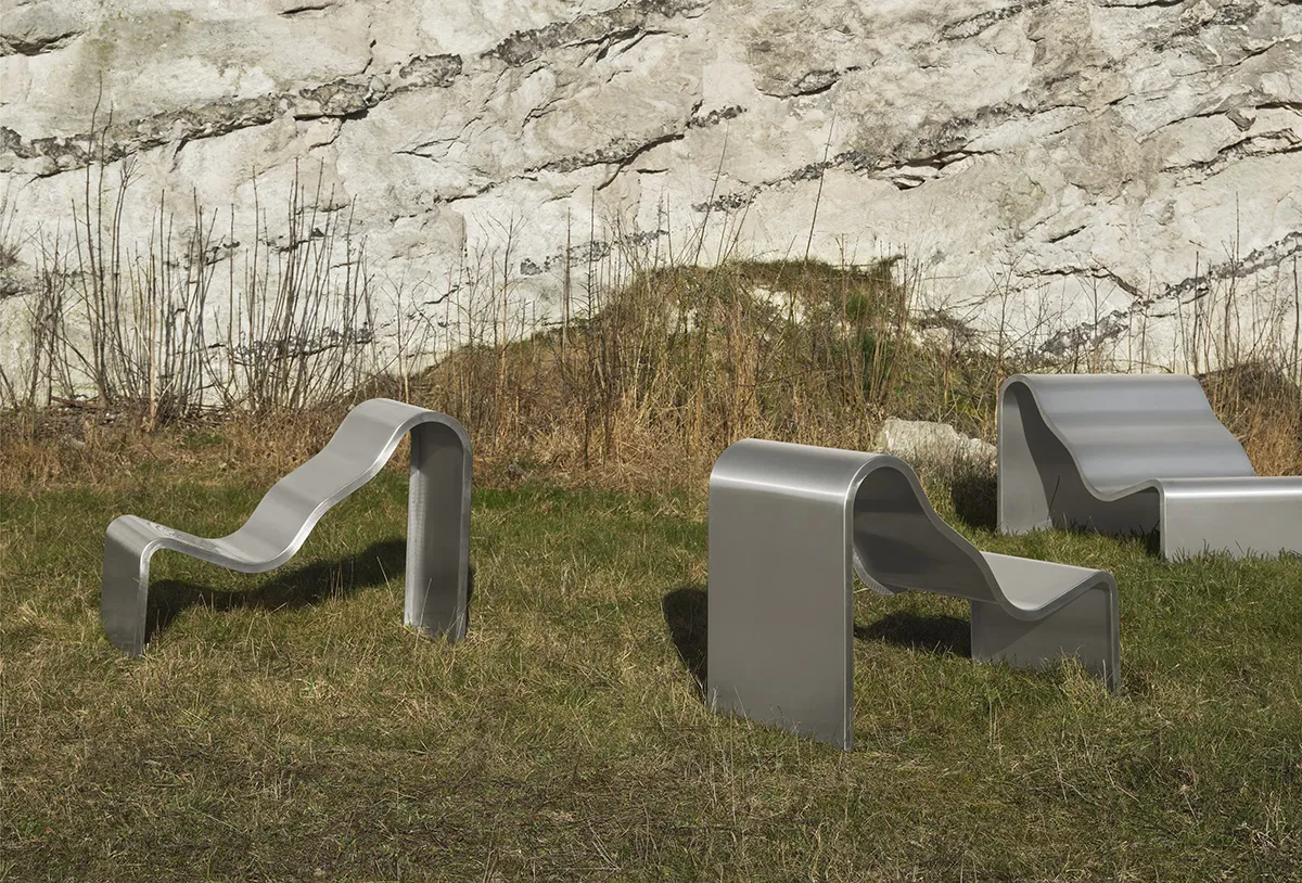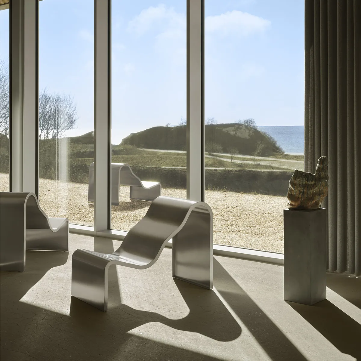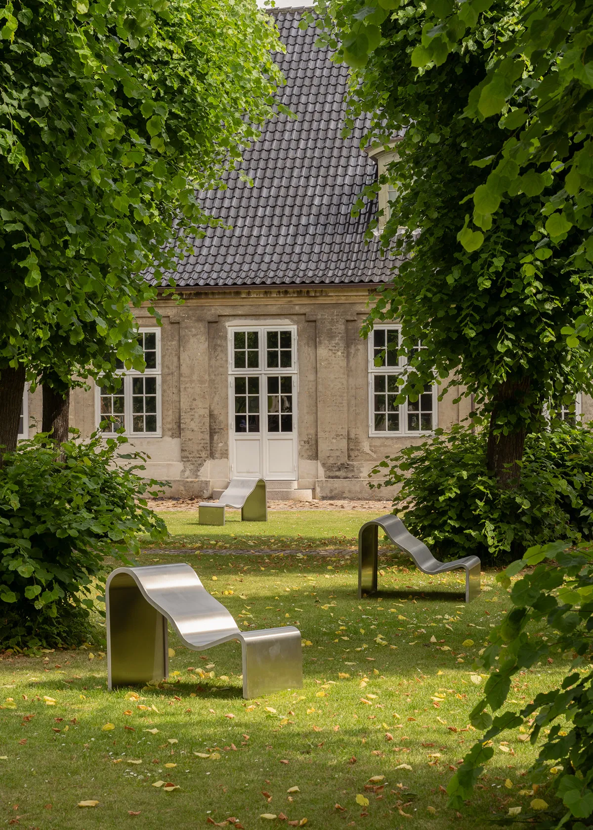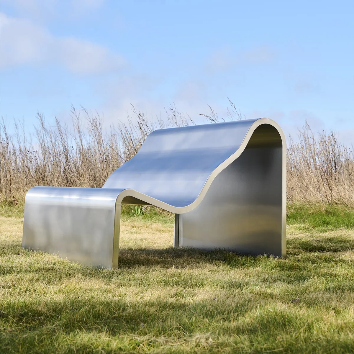 Lise Vester works from the belief that sensory design can increase our well-being. With this essential design approach Dream View Bench in brushed stainless steel seamlessly integrates into everyday life while interrupting routines and inviting for moments of reflection, encouraging for new perspectives.