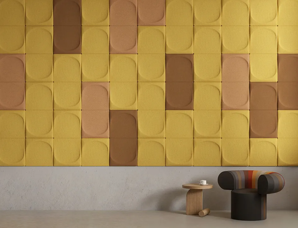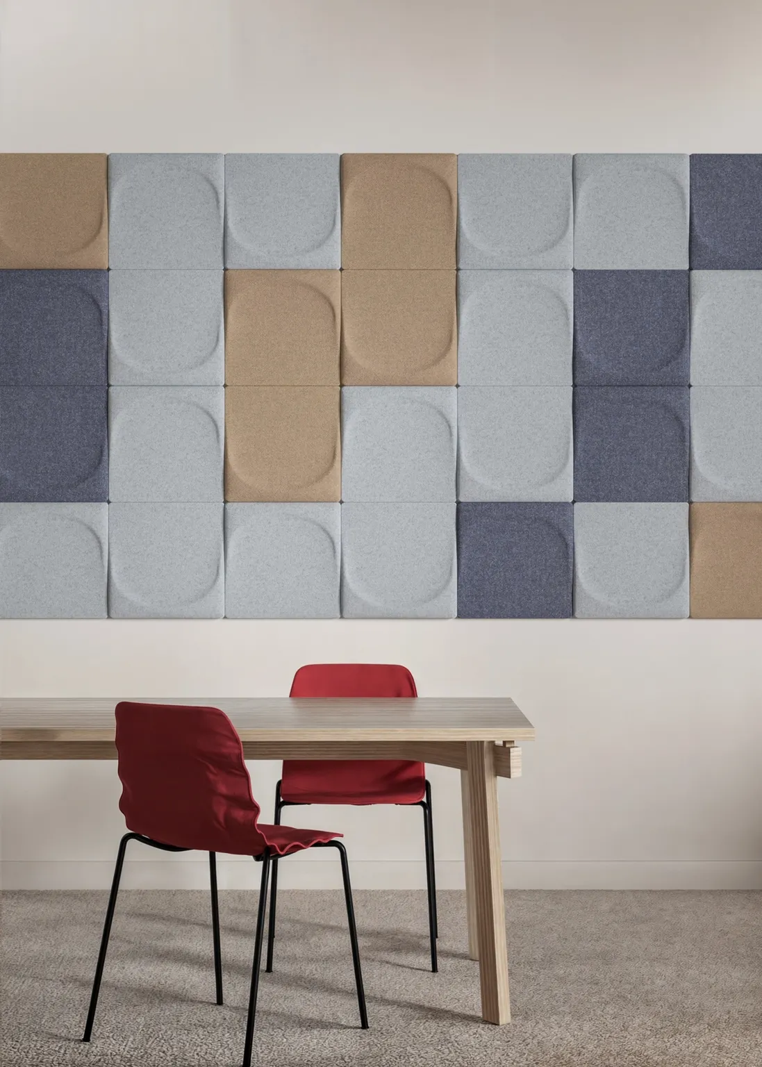 Like the three previous sound absorbers/wall decorations, Ginkgo, Gaia and Arc, Drip is multifunctional in the way that it is just ONE panel that can be turned in four different directions or change place with others, creating new and endless patterns. Drip reduces ambient noise and echoes in the room and gives the room the best sound quality while creating a colourful and inspiring ambient. Drip is mounted on the wall with a magnetic fitting, so you can easily move around the panels when you feel like it, maybe to change direction or go from light to dark.