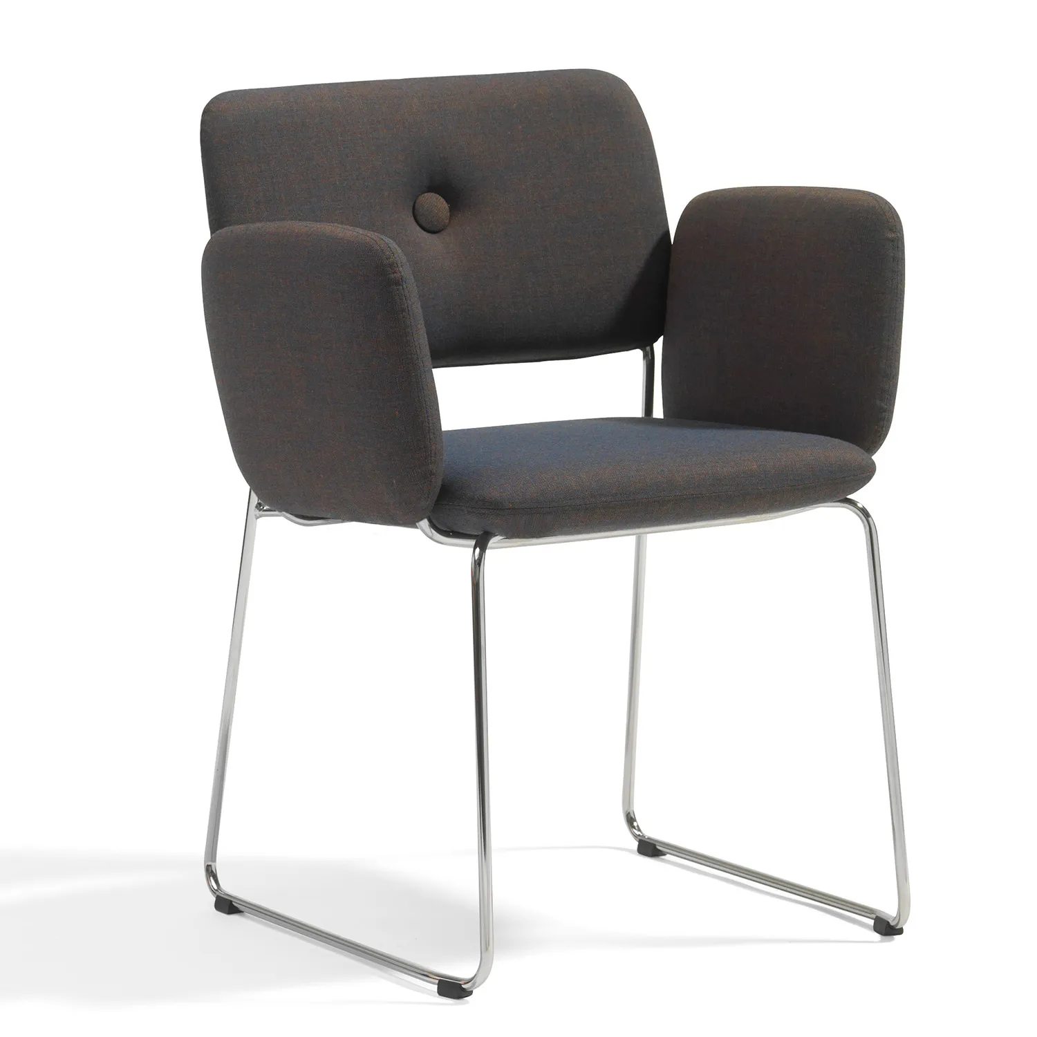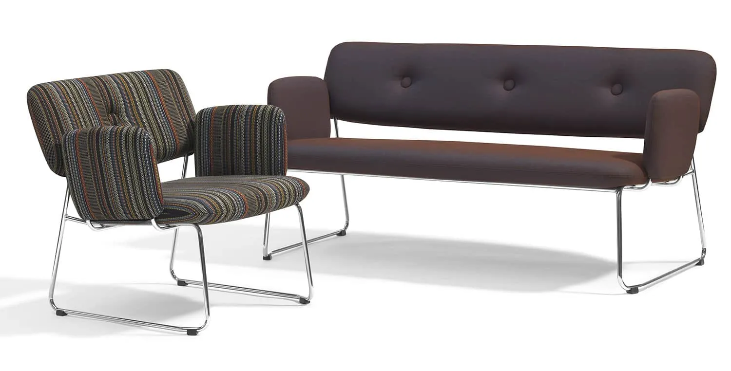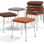 The Dundra family keeps on growing. Needs exist and customers exist, so we’re adding new products to cater for additional requests and make the Dundra family as complete as possible. It all actually started with a sofa called Dunder 2010. A soft shape built up of cushions, covered buttons, extendable sections – it was friendly and inviting. Then we launched the first Dundra chair, bar stool and bar chair focus in 2011, and now we’re adding a stackable sofa, an armchair and a stackable stool. The series has also gained upholstered armrests that can be fitted to the sofa, easy chair, chair and bar chairs. You may say that we have added seven new family members. Welcome!