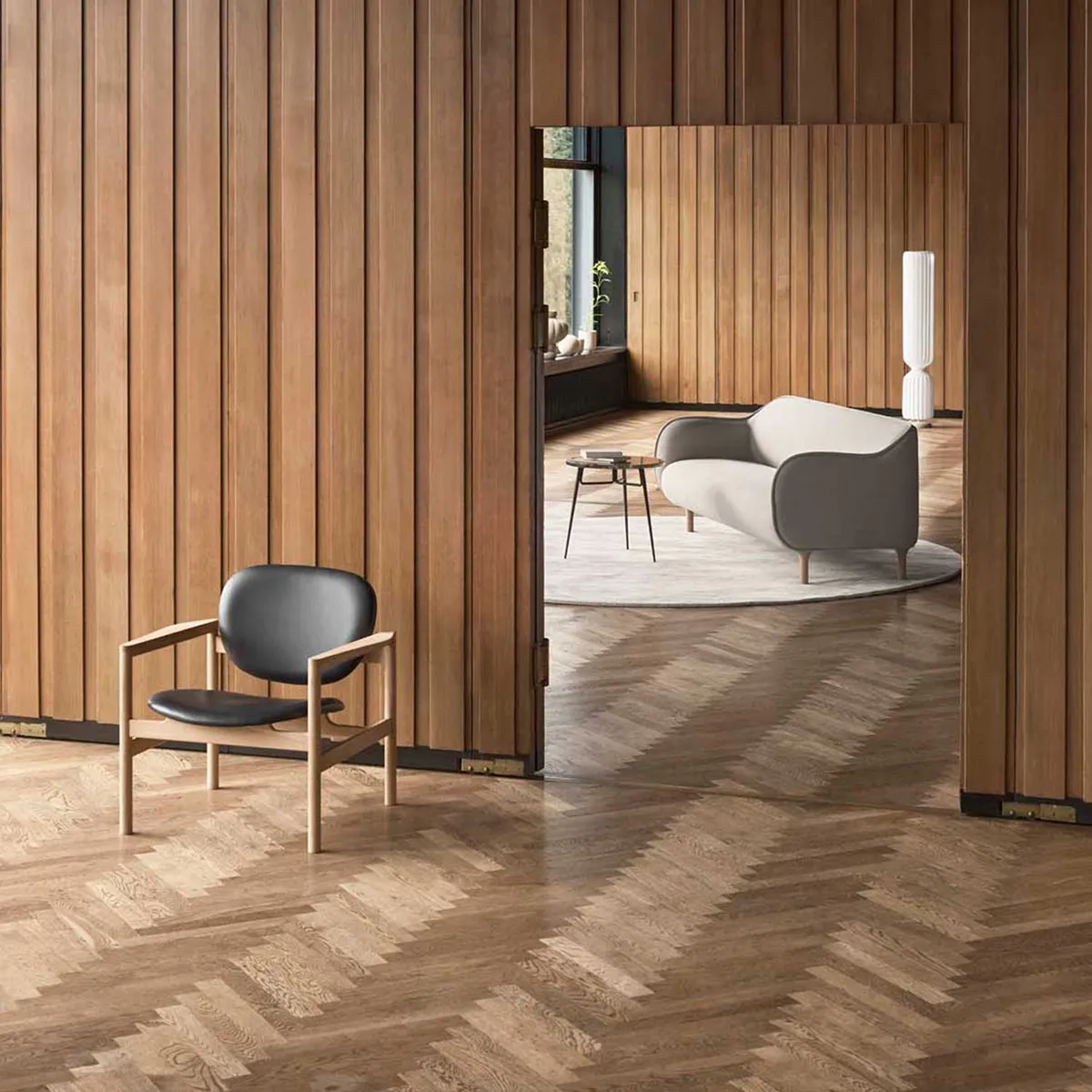The Ekko family is available in 2, 2.5 and 3 seater as well as an armchair, with either a solid white or black lacquered oak, or smoked oak leg.