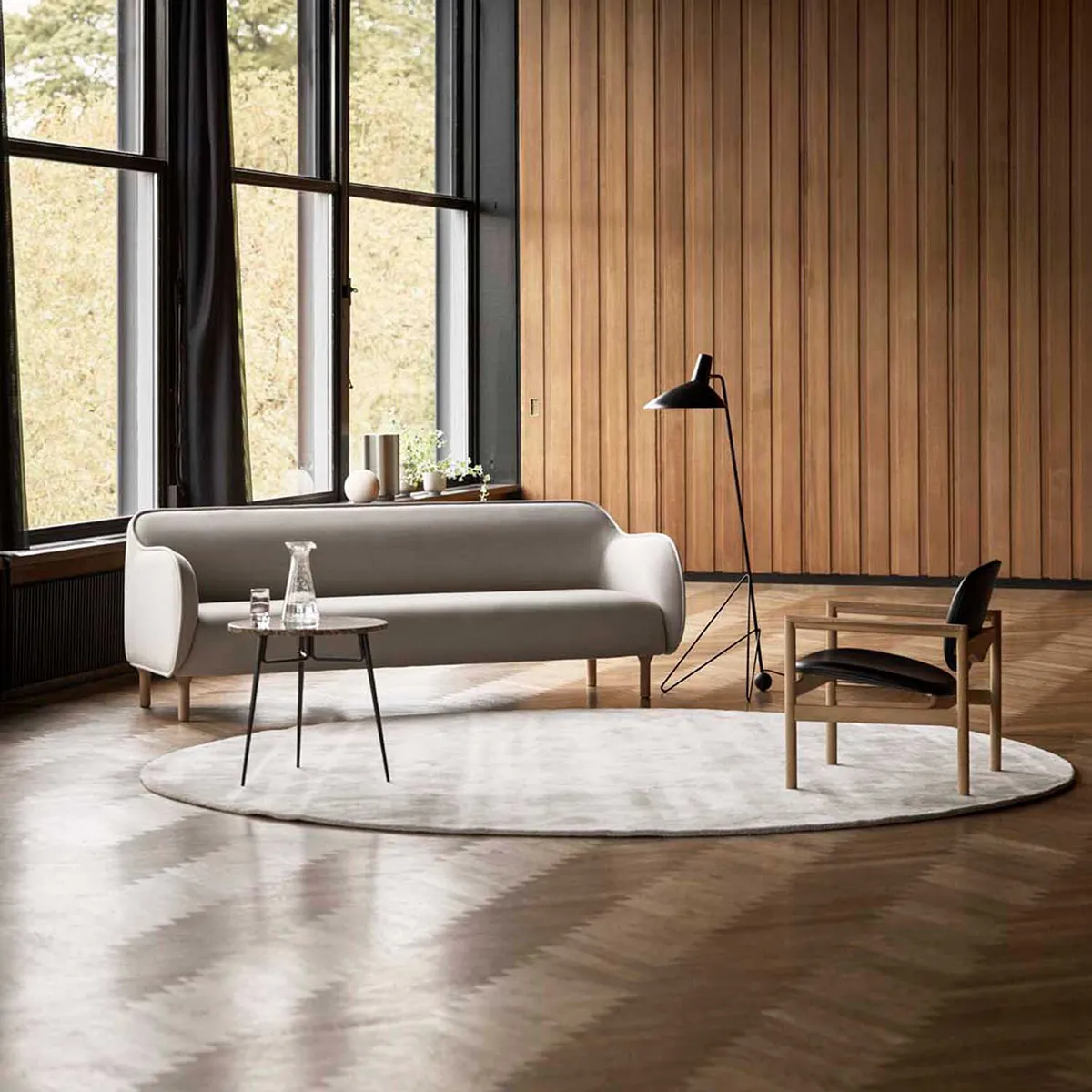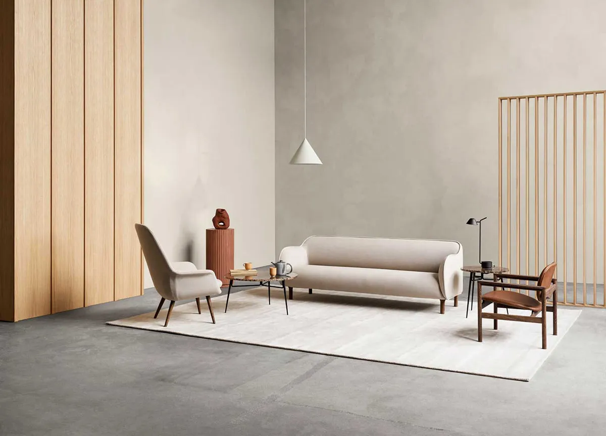 The Ekko family is available in 2, 2.5 and 3 seater as well as an armchair, with either a solid white or black lacquered oak, or smoked oak leg.