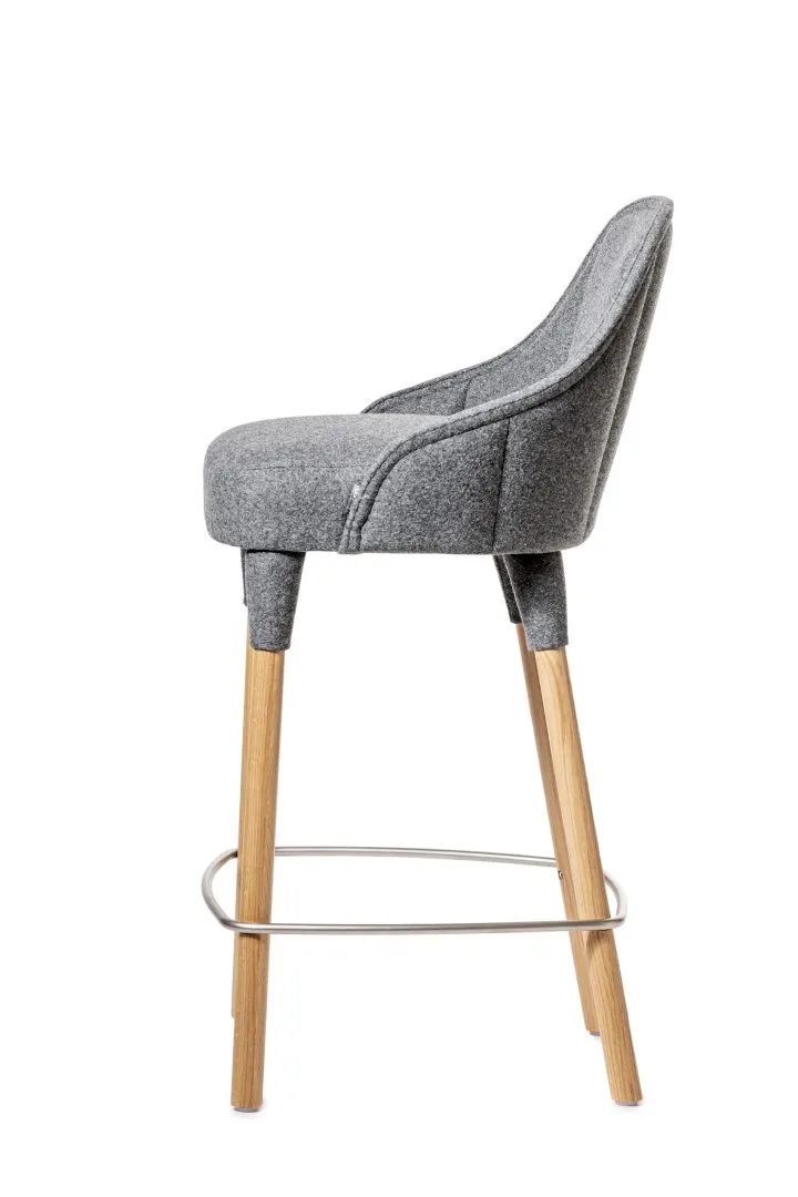 Barstool with upholstered back and seat in fabric or back frame in partly recycled felt. With decorative stitched pattern on backrest, choice of. When choosing fabrics, we recommend stretch and wool fibres.