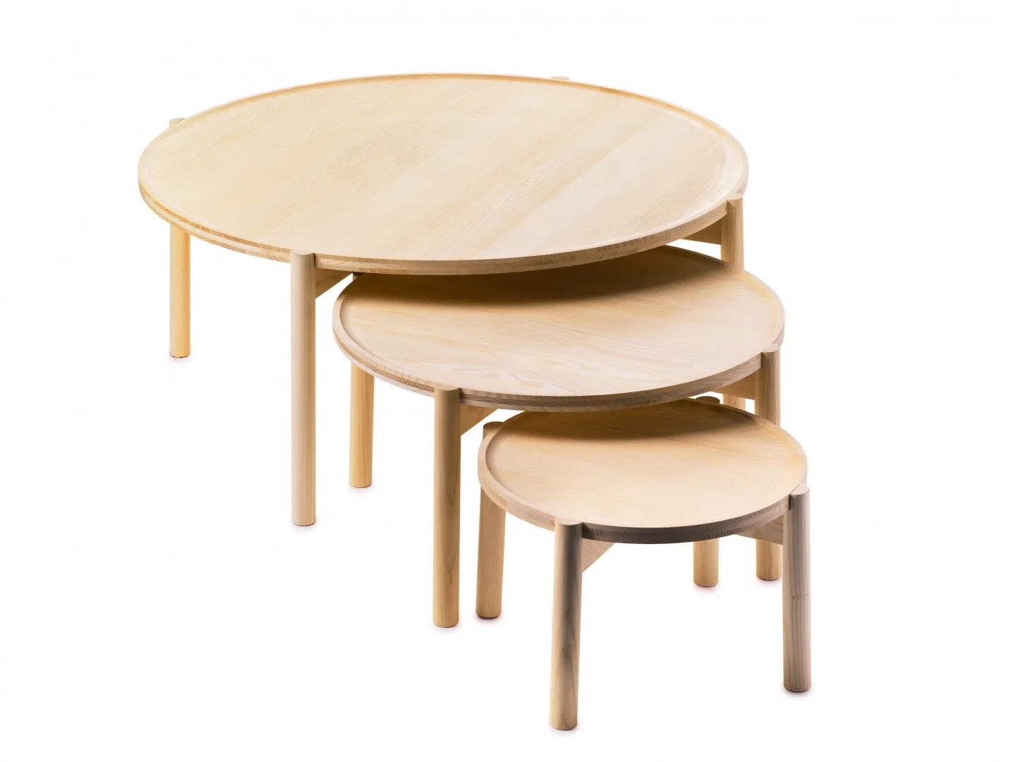 Coffee/nesting tables with top in ash veneer and base and frame in solid ash. Available with an arch in solid ash at an additional cost. All tables are sold separately. Design 2013.