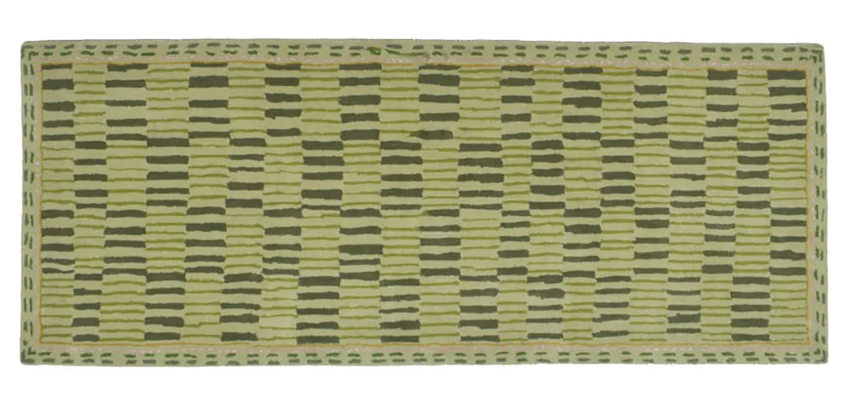 The pattern references floorboards or rows of books, interpreted in different ways. The colour palette is the same as in Biblioteket, with the addition of a few new accents of green. The Floors & Books carpets are tufted in 100% New Zealand wool.
