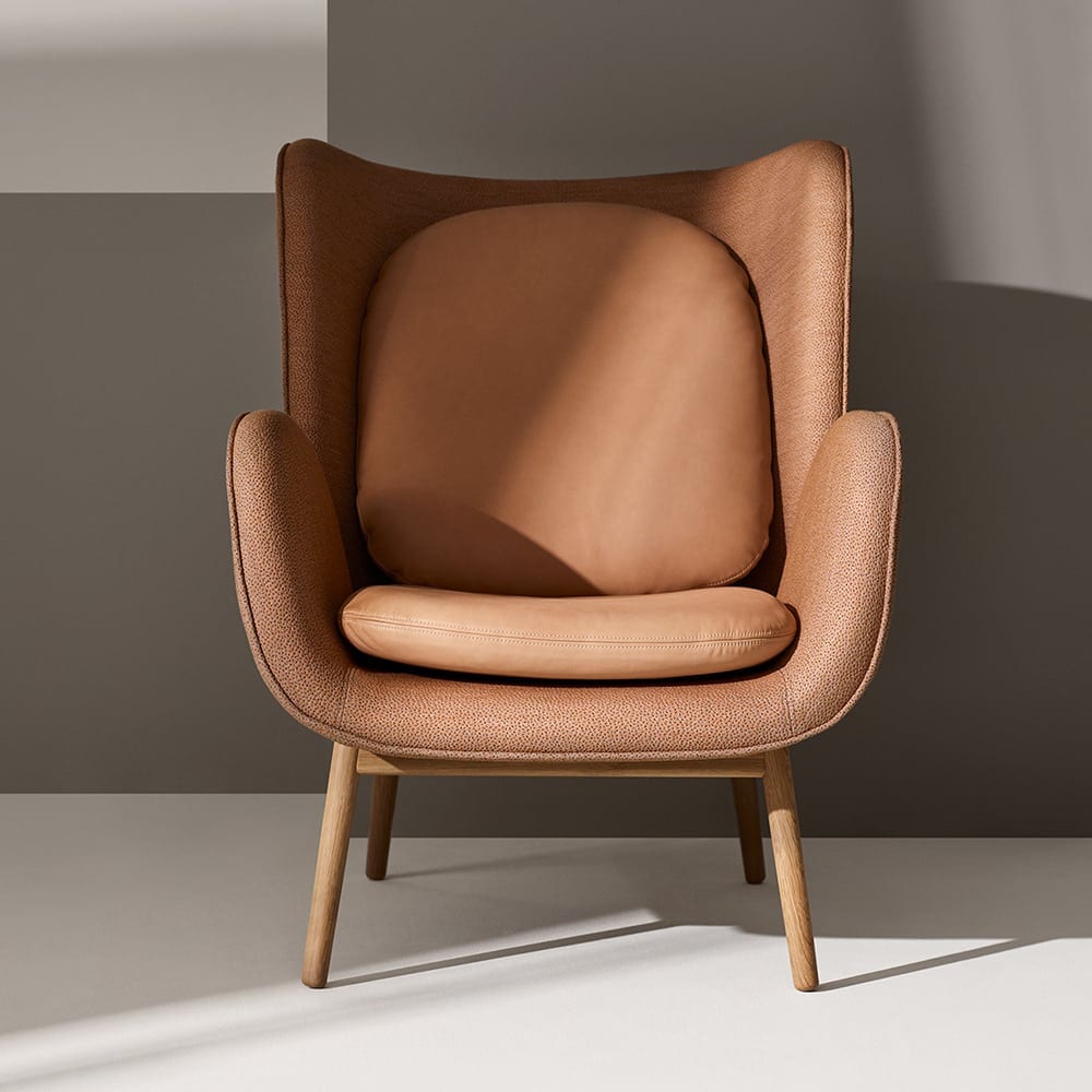 Quiet design attributes that result in pieces of furniture that work exactly as they’re intended to. In the case of enclose, Norm looked to nature for inspiration for this attractive wingback. Two shells, resting on a wooden base that invite you to sit. Both shells are individually upholstered, easier to change the look over time if you desire. A companion that will follow you loyally through life.