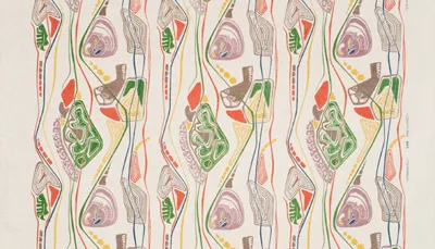 Utställningen på Moderna Museet presenterar valda delar ur hans produktion. I den lilla scenografin visas möbler, tillsammans med några av de tyger han designade på 1950-talet. Bildkonsten representeras framförallt av verk från det sena 1960-talet och fram till 1980-talet.