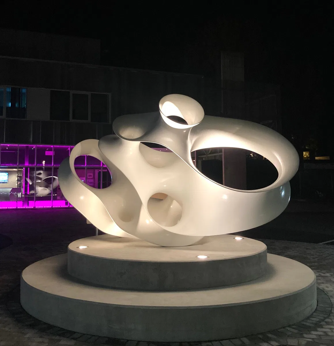 Layer is constructed from aluminium, assembled in lamellae and open cavities that create a visual sense of transparency and movement. The result, as Hild has described it, is an “organic self-portrait” — a rare direct statement about the autobiographical dimension of her abstract practice. The interplay of form and void that characterises all her work functions here as something explicitly personal: a record of the sculptor’s interior life left in a public space.
