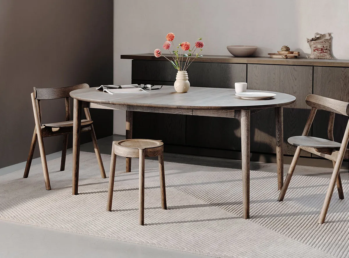 New 140 cm round version joins Northern’s expandable oak table series Gathering around a dining …