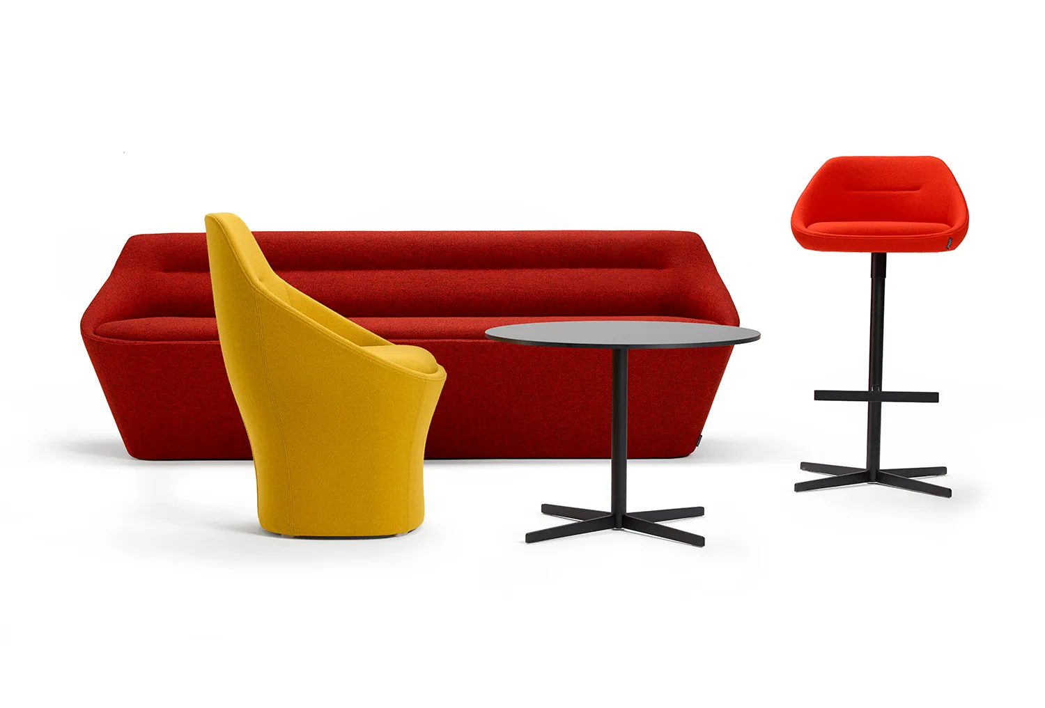 During the past year, the product development team of Offecct has worked closely with Christophe Pillet to create additions to the collection. It now features a new upholstered sofa and an easy chair with a wooden frame, a new chair series available in different versions; a thin steel frame, swivel, wooden legs and high back. The table series has also been extended with amongst other a high table.