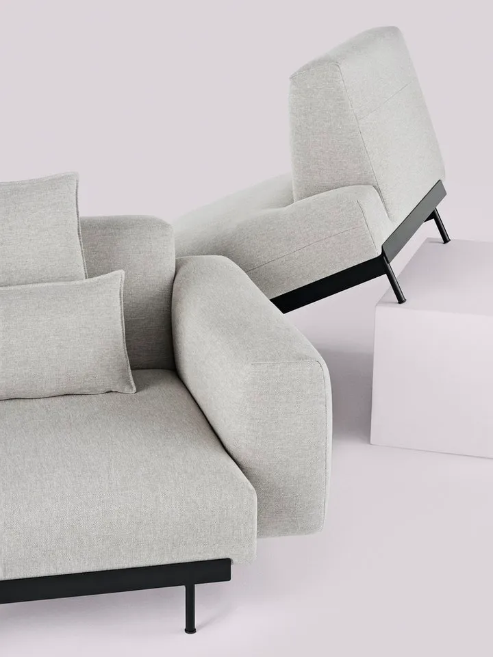 On the modularity of the design, the duo notes: “We wanted In Situ to be a sofa that could scale up and down in size, so it would feel like a really nice 2-Seater but could also grow to be a super big sofa landscape”, and continues: “We implemented some design features that would unify the modules so you wouldn’t read them as singular modules put together by using the steel bar to achieve a more unified expression.”