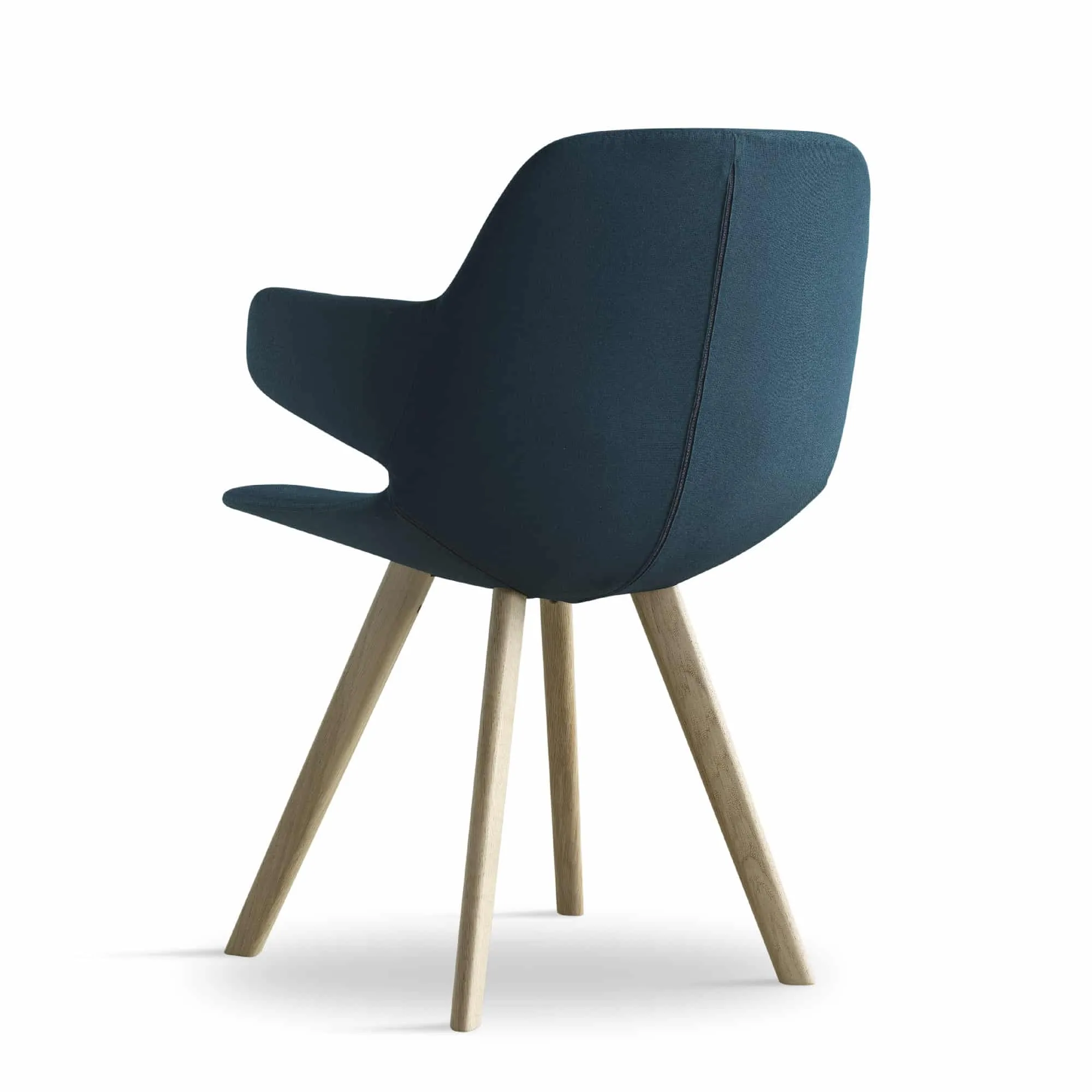 The legs are executed in oak and, just as with the other chairs in the collection, they have been made more round to match the organic expression of the chairs. The wood adds a sense of warmth to a meeting room, living room or dining room. Just like the other chairs in the Eyes collection, it is possible to choose a steel frame. The look of the chair can also be changed by the choice of legs, textile, leather, colour and buttons.