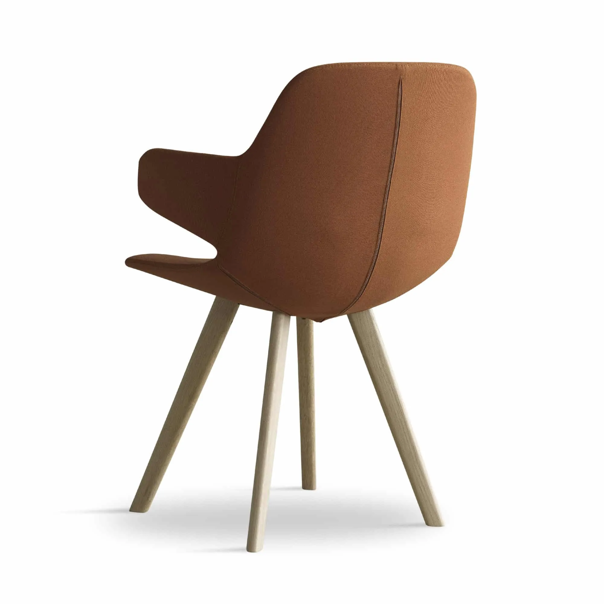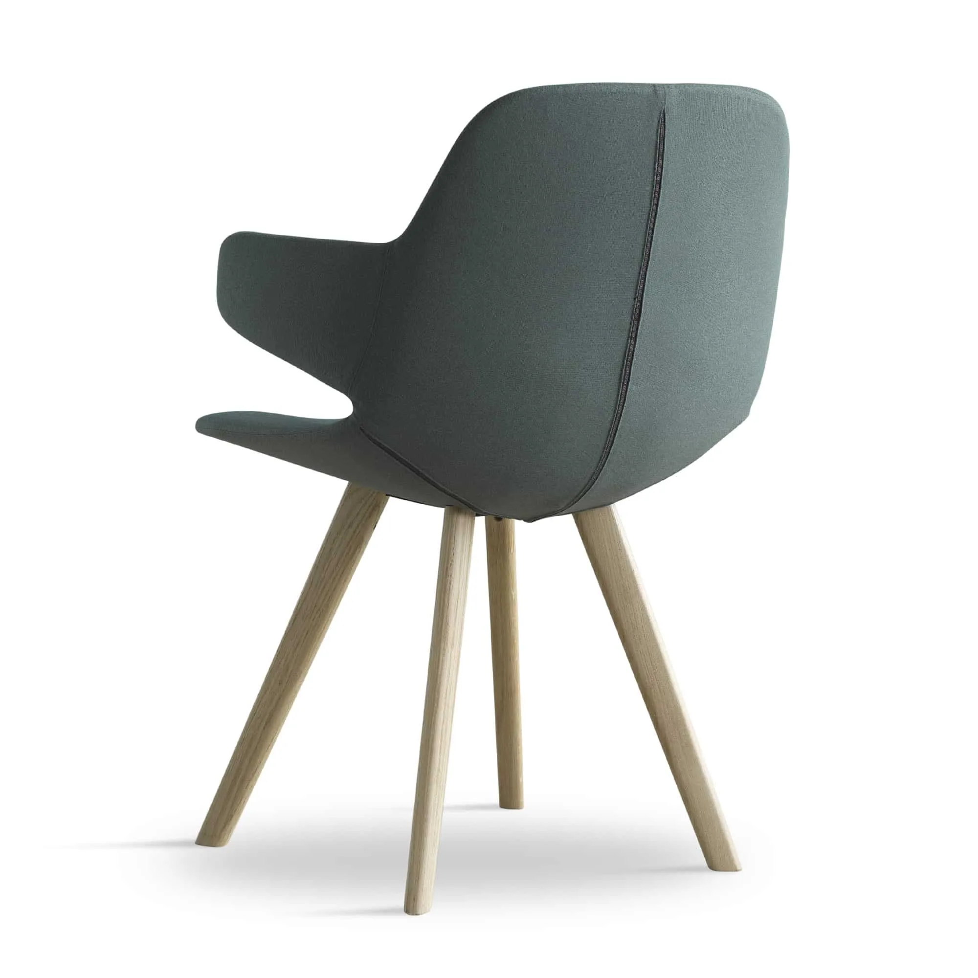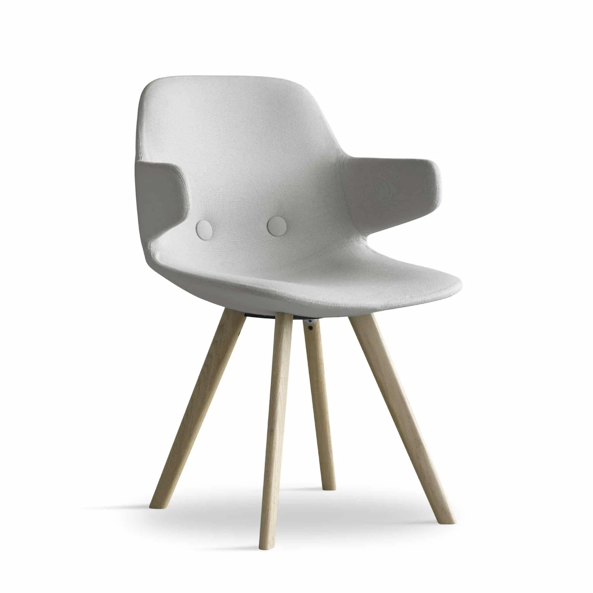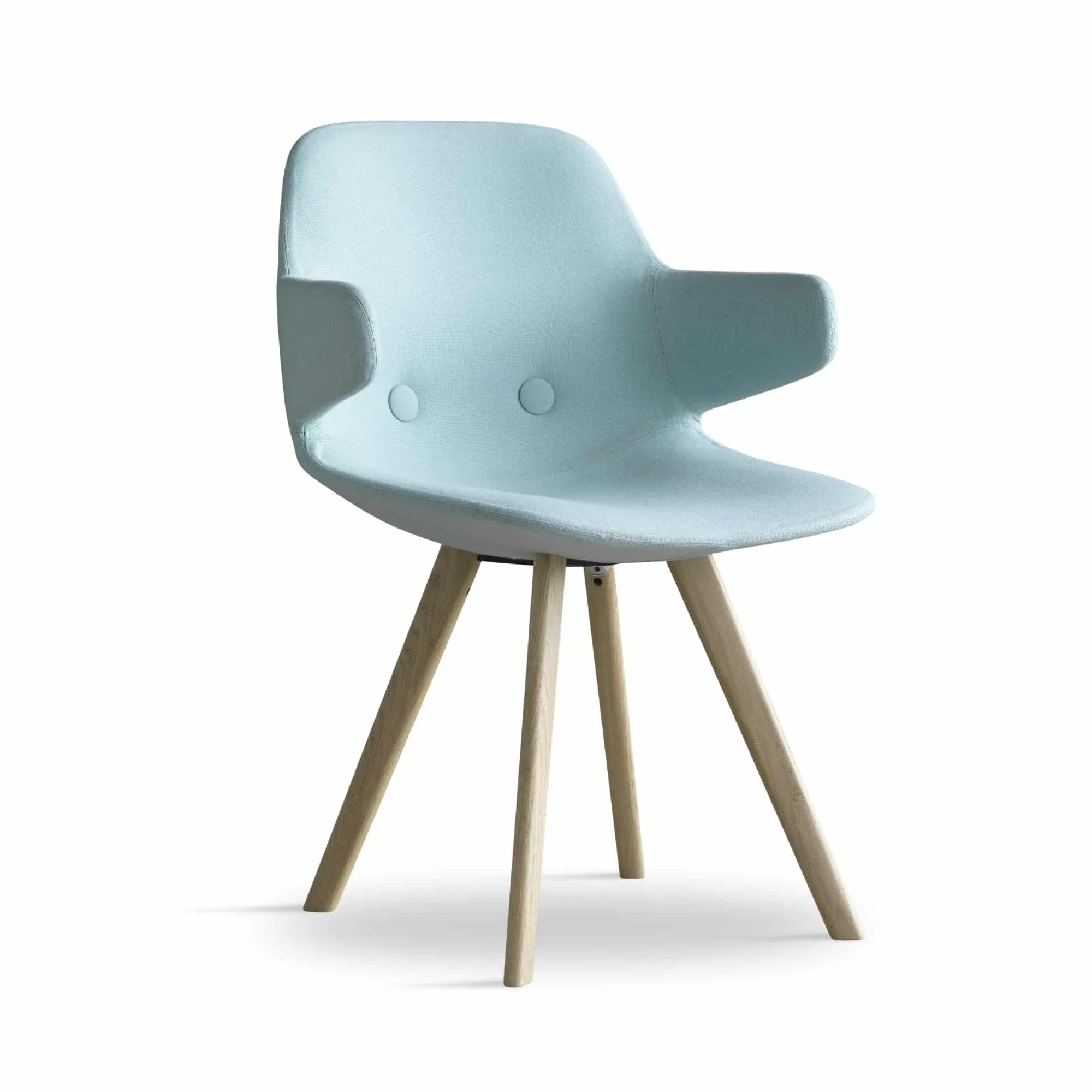 The legs are executed in oak and, just as with the other chairs in the collection, they have been made more round to match the organic expression of the chairs. The wood adds a sense of warmth to a meeting room, living room or dining room. Just like the other chairs in the Eyes collection, it is possible to choose a steel frame. The look of the chair can also be changed by the choice of legs, textile, leather, colour and buttons.