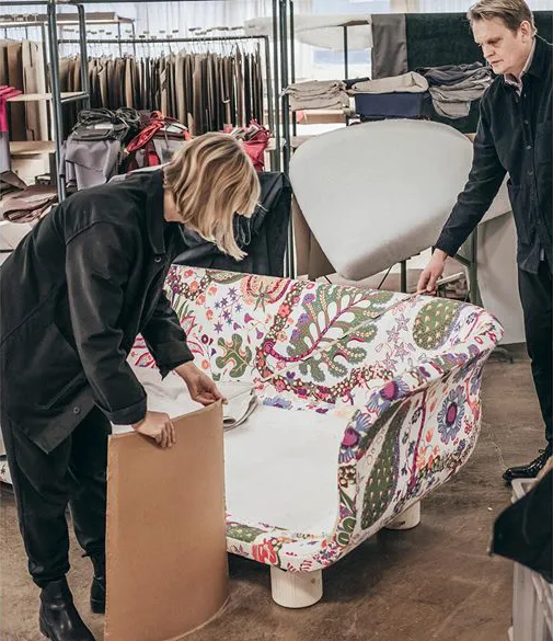 The Famna sofa is designed by the Stockholm-based design and architecture studio TAF, founded by Gabriella Lenke and Mattias Ståhlbom. Since the company was established in 2002, TAF has received international attention through its work on everything from exhibitions, interior, and product design. The designs have been exhibited at MoMa in New York and are part of both the Swedish National Museum’s and the Danish Design Museum’s permanent collections.