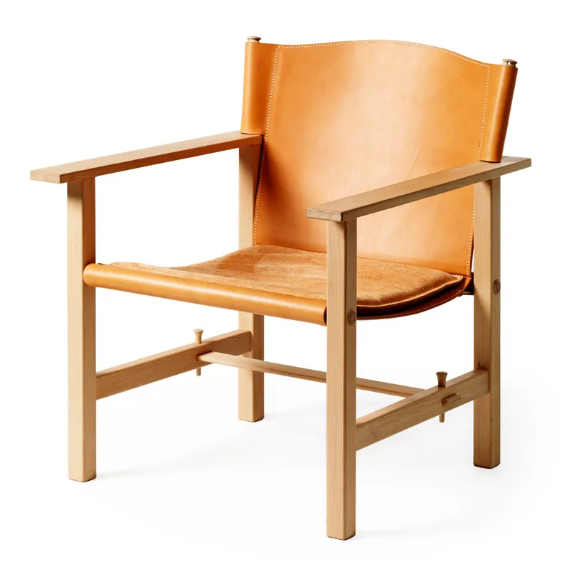 Seat and back in sturdy vegetable-tanned leather in tanned,