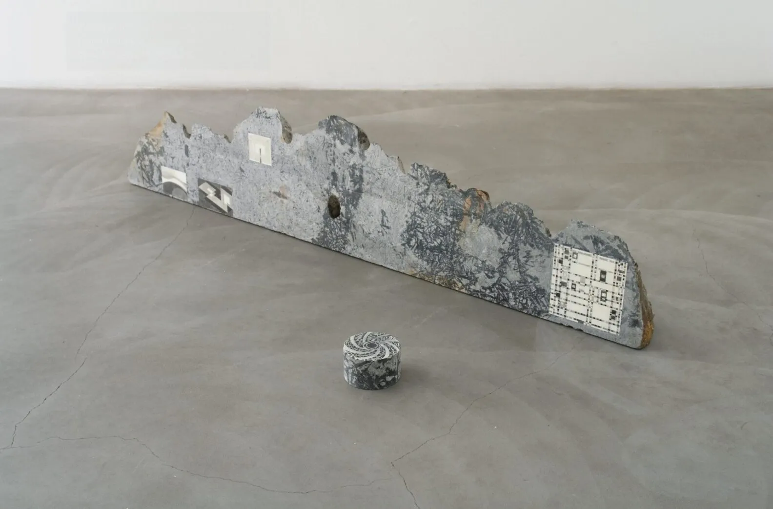 Kenetti invited ten artists to the exhibition, each of whom has been given their own room/space. This allows the entire exhibition to be perceived as a series of individual showcases. At the same time, it creates an intriguing network of connections where each exhibition contributes to the whole, forming a tapestry in which different artistic approaches, techniques, and thematic aspirations resonate with one another. Elements such as the abstract nature of the works and the black-and-white palette, as well as deviations from these norms, recur throughout the spaces. This weaves a visual narrative and contributes to the overall experience. What’s more, it is evident that the architecture of the hospital building permeates this visual encounter.