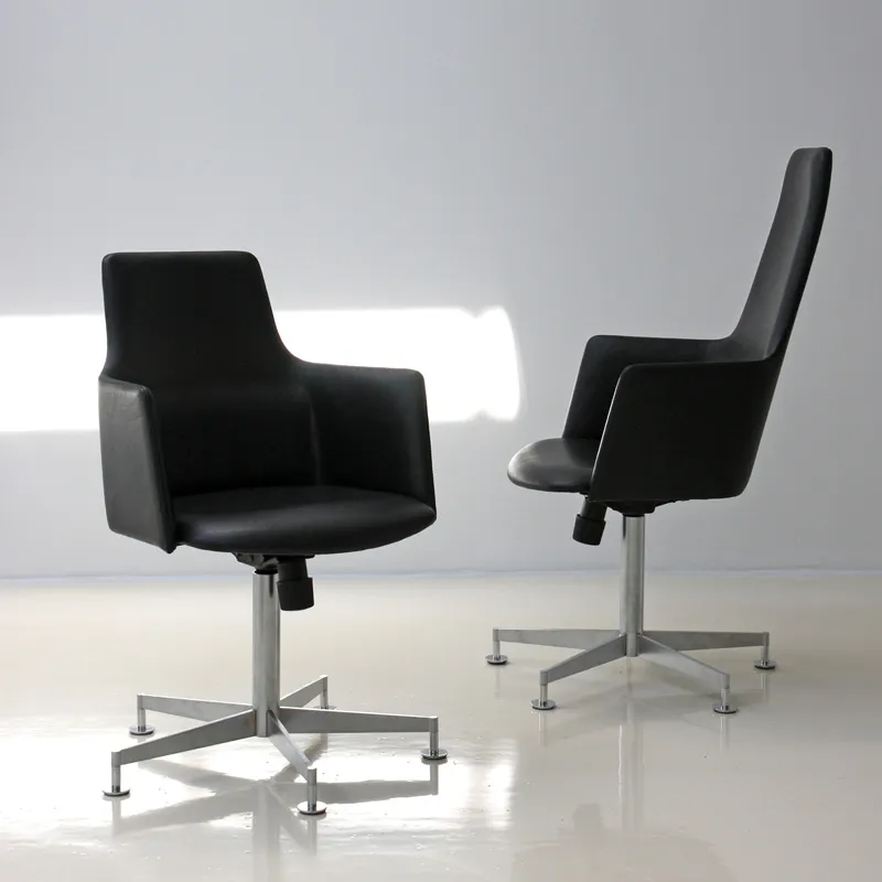Onecollection and I “found each other” in a draw, and so the name Fortuna was obvious for this minimalistic, slimm shell chair which with it’s well- formed thinly upholstered body and arms and with loin support making it possible to make a long row of comfortable conference chairs, working chairs and dinning chairs – chairs with high or low back – chairs on castors, on runners, on legs, with rock back and forth in wood or metal.