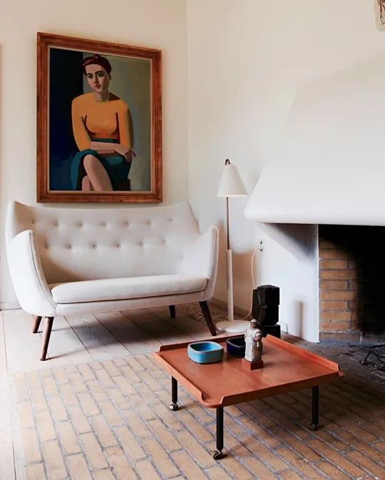Finn Juhl was incredibly dynamic when he designed the interior of his house and he would continuously change the pieces constituting its interior design as his own portfolio grew. For the first couple of years, when he was living in the house, he had Windsor chairs in his dining room, but he would promptly replace these with Egyptian Chairs once he had designed these. Some of the pieces in the house were also designed to serve a specific purpose in his own home, e.g. the Poet Sofa which is placed in the living room, right underneath a portrait of Hanne Wilhelm Hansen which was painted by the artist Vilhelm Lundstrøm.