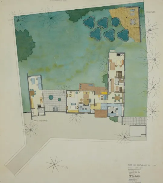 Finn Juhl drew the watercolour floor plan of the house in 1968, more than 25 years after the house was finished.