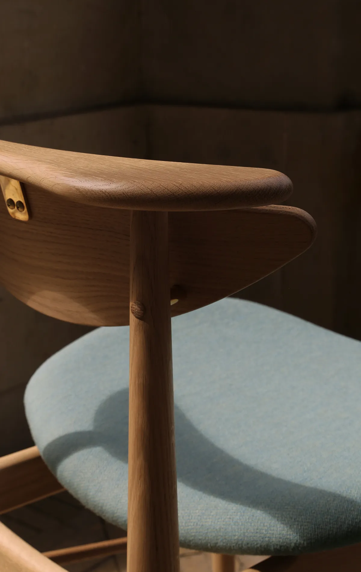 Finn Juhl’s Reading Chair is now being introduced in a new version entirely in oak. The chair is upholstered with ‘Watercolour’ textile in the colour ‘Himalaya’ by House of Finn Juhl and Kjellerup Væveri.
