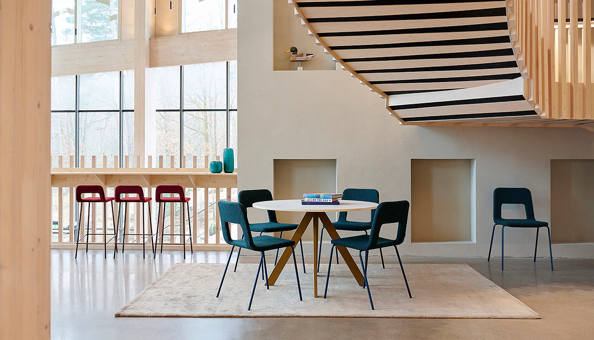 When Studio was launched in 2004, the characteristic “bottle cap” shape in the backrest became a clear part of the chair’s identity. It functioned as a graphic signature and gave the model its own voice in the room, while the shape was complex to produce.