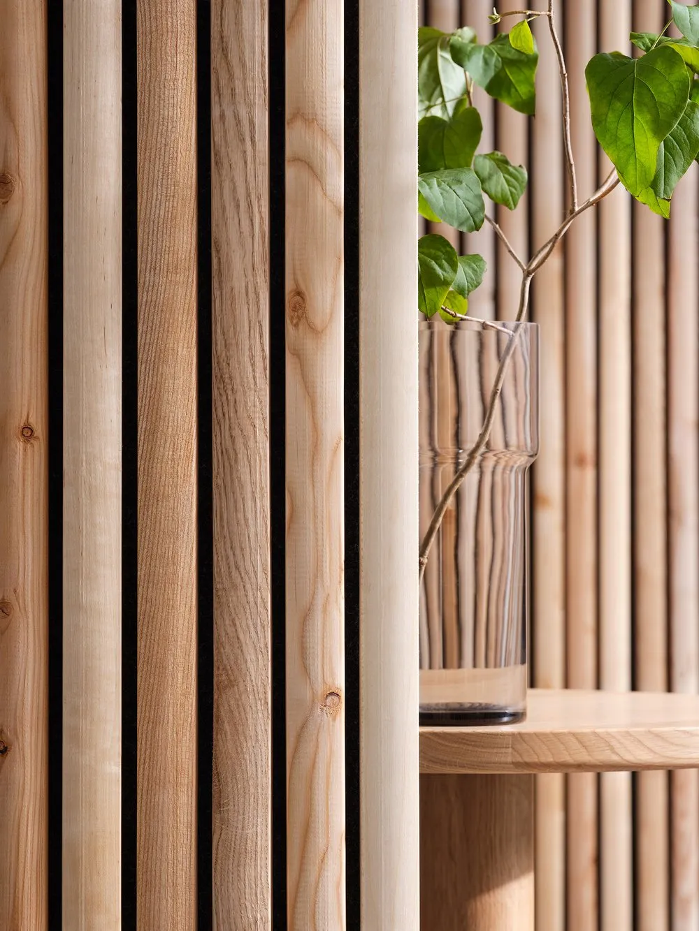 Nordgröna proudly introduces Flora, a sound-absorbing wood slat system inspired by the beauty and biodiversity of natural forests. Each solid wood piece, crafted from various tree species, tells the story of its unique origin—a story of diversity and sustainability. With the option to obtain a QR code, customers can learn about the exact origin of each piece, including the specific tree species used. By preserving healthy branches and using varied wood lengths, Flora reduces waste, preserves the wood’s natural color variations, and honors the forest’s essence.
