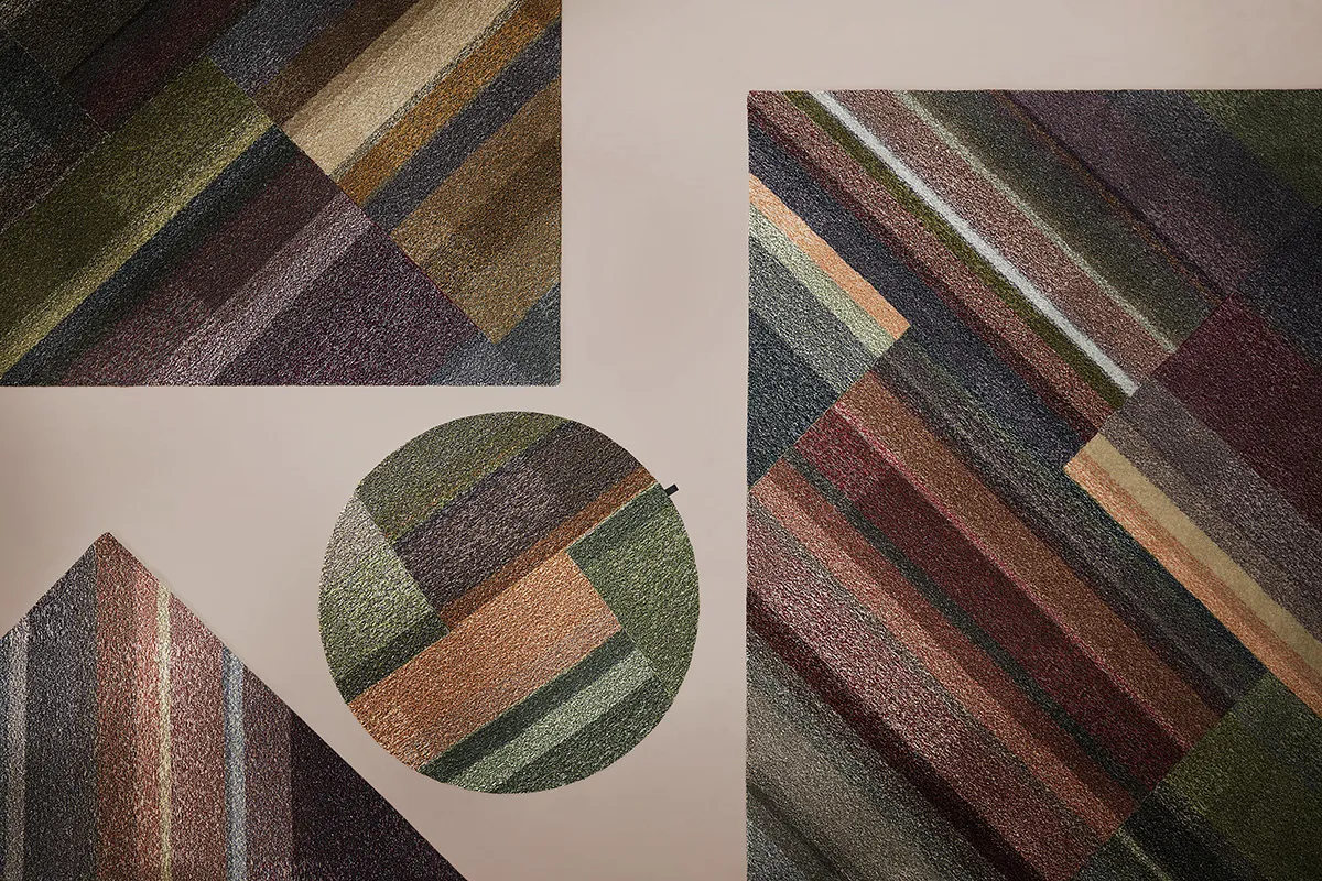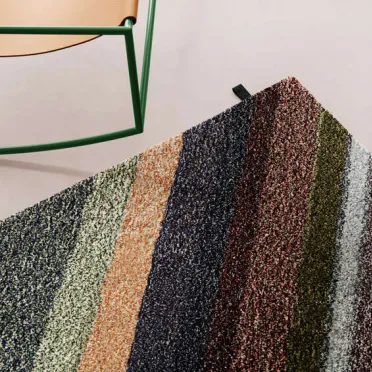 Colorful mosaic of the landscape. If you ever glanced down on earth from a landing aircraft you will go through a déja-vu. A mixture of flower fields and farming in a diagonal geometric jigsaw-puzzle where laws of nature create strict lines blurred by odd wild plants. Leftover yarn in various colors from or contemporary production fulfills our sustainable ambition by minimizing waste. Furthermore, it results in thrilling stochastic process and unique rugs. The somewhat uncontrolled, but color coordinated, systematics of this procedure leads to aesthetic values whose three-dimensional expression takes the mind on a fascinating journey and opens possibilities to interior solutions fitting of the times we live in.